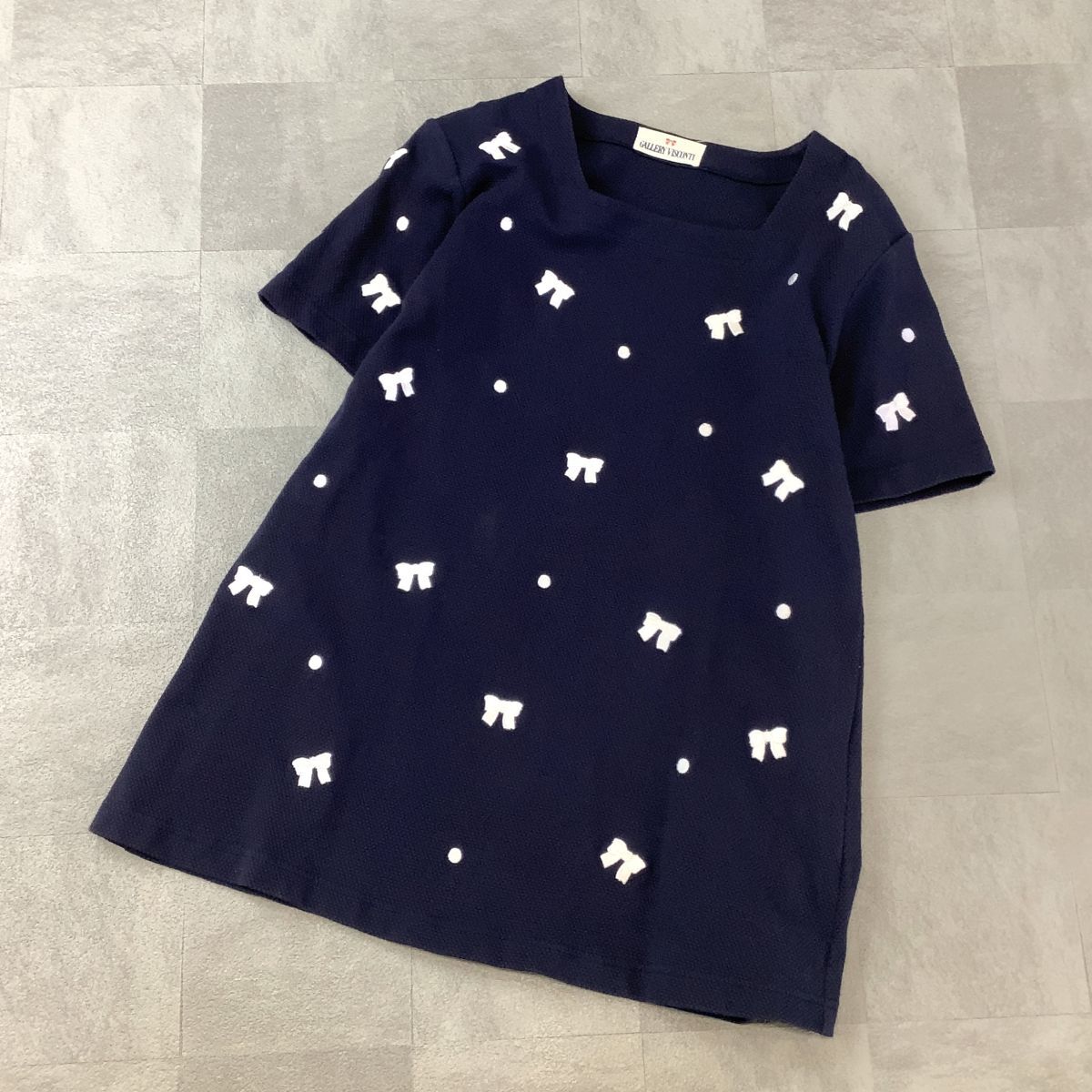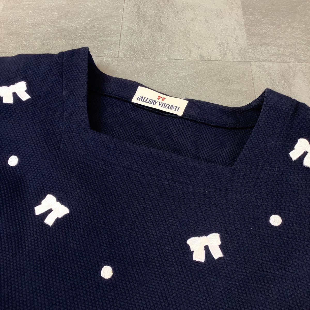 良品 GALLERY VISCONTI ギャラリービスコンティ リボン刺繍 半袖 カットソー ブラウス レディース M〜L ネイビー