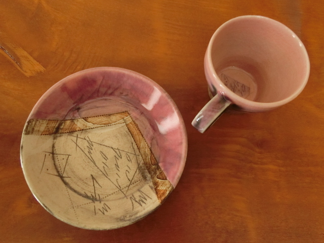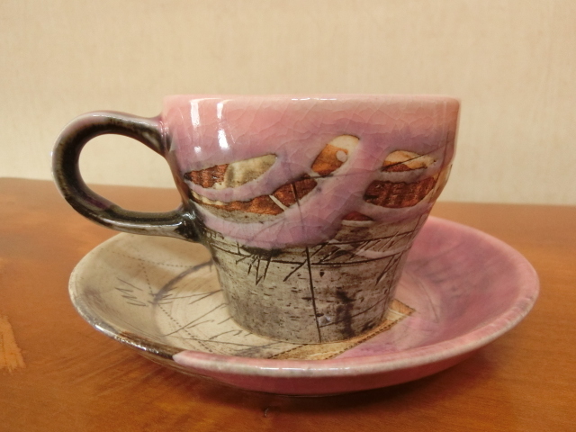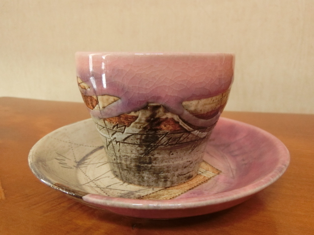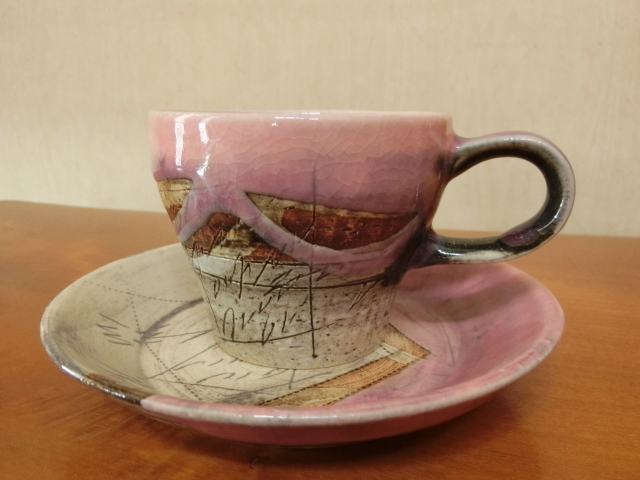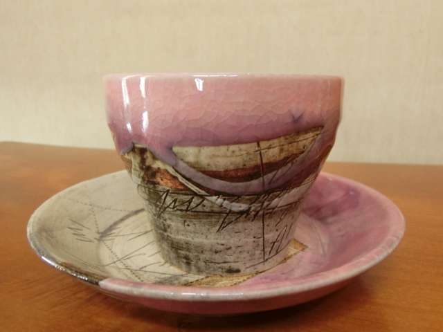 ◆美濃焼 鶴琳窯 新品 ピンク PINK 碗皿 C/S コーヒーカップ◆