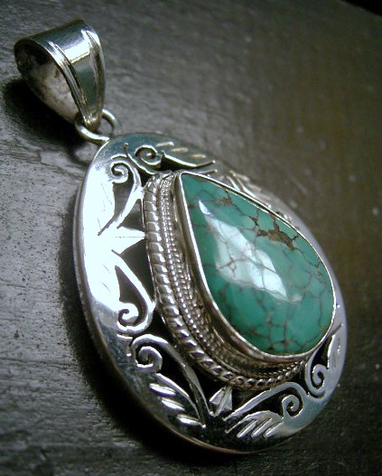 silver925*ターコイズペンダントトップ 4.4センチ*