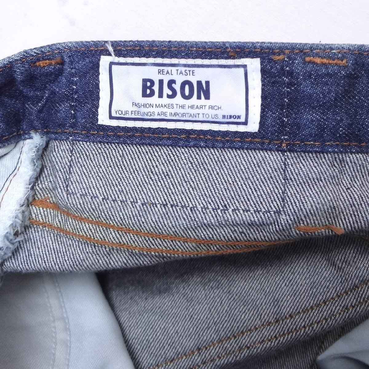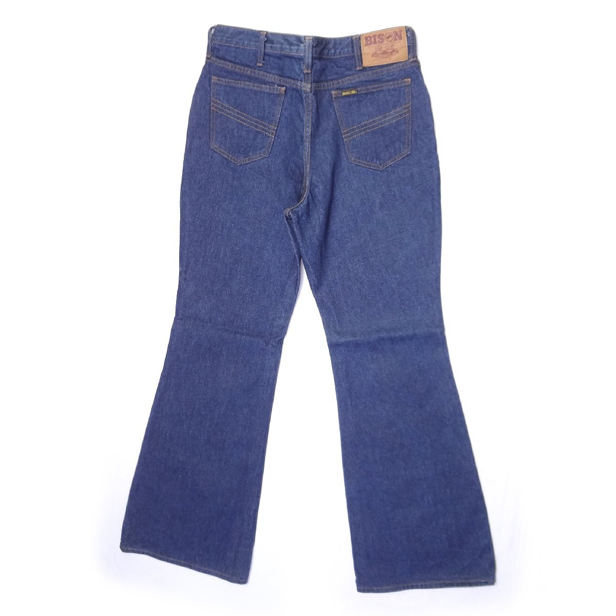 バイソンBISONの517ブーツカットジーンズ、実店舗の店頭展示品を1度洗濯しただけの未使用品、綿100%、インディゴブルーフレアージーパン、ラッパGパン