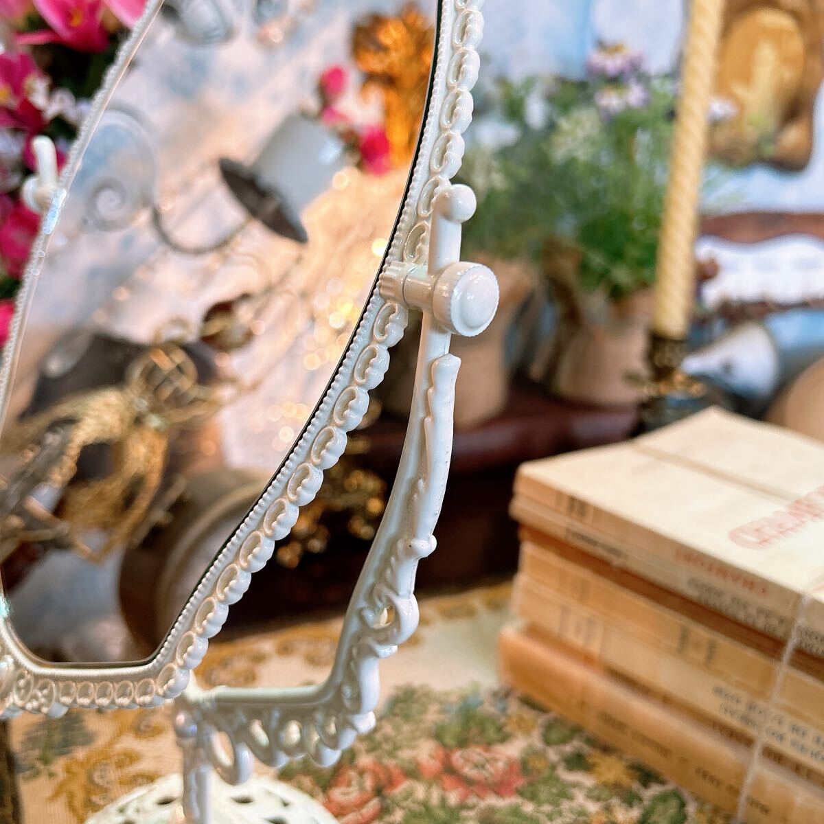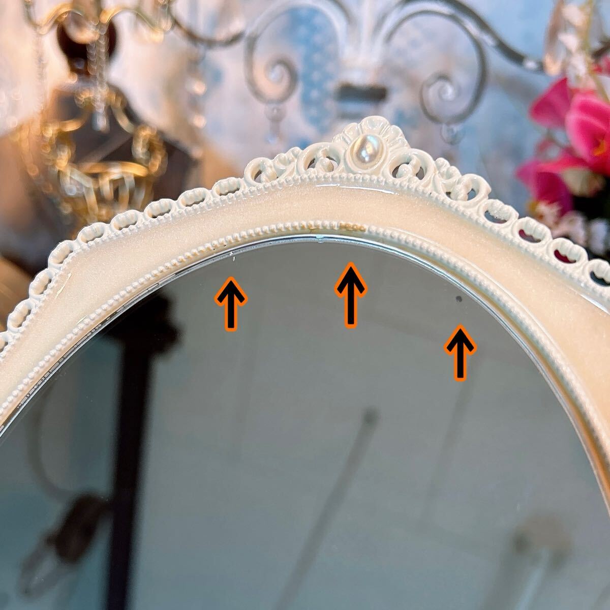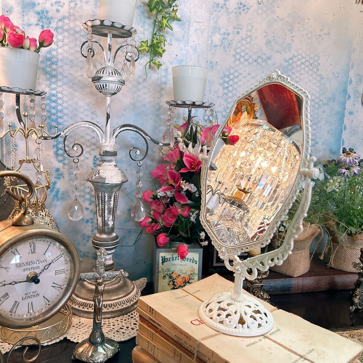■アンティーク調の繊細なデザインが素敵なテーブルミラーです。
