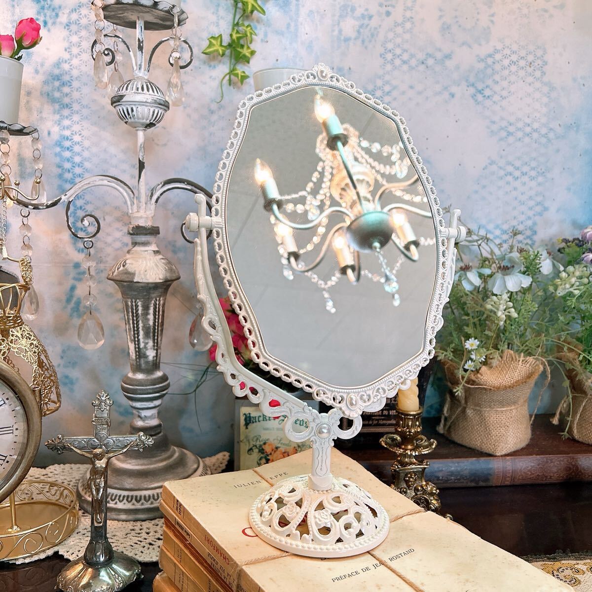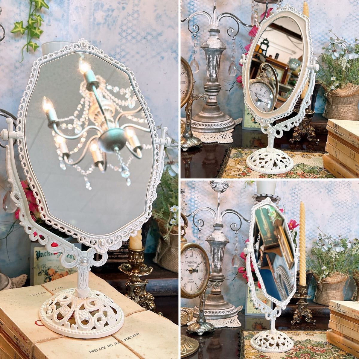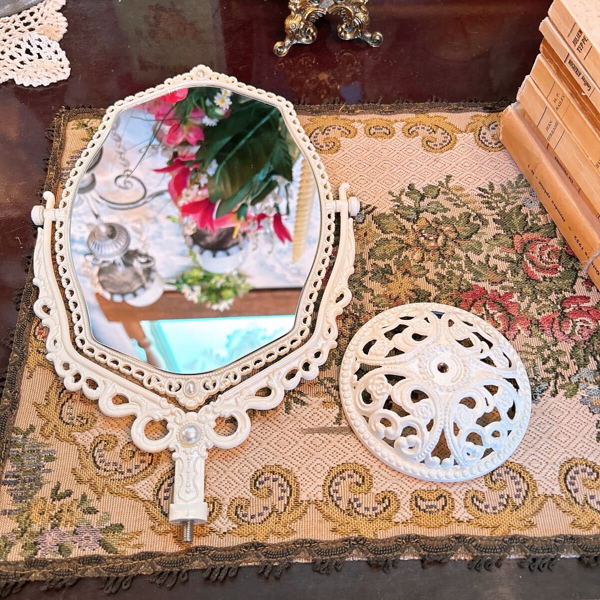 ■アンティーク調の繊細なデザインが素敵なテーブルミラーです。