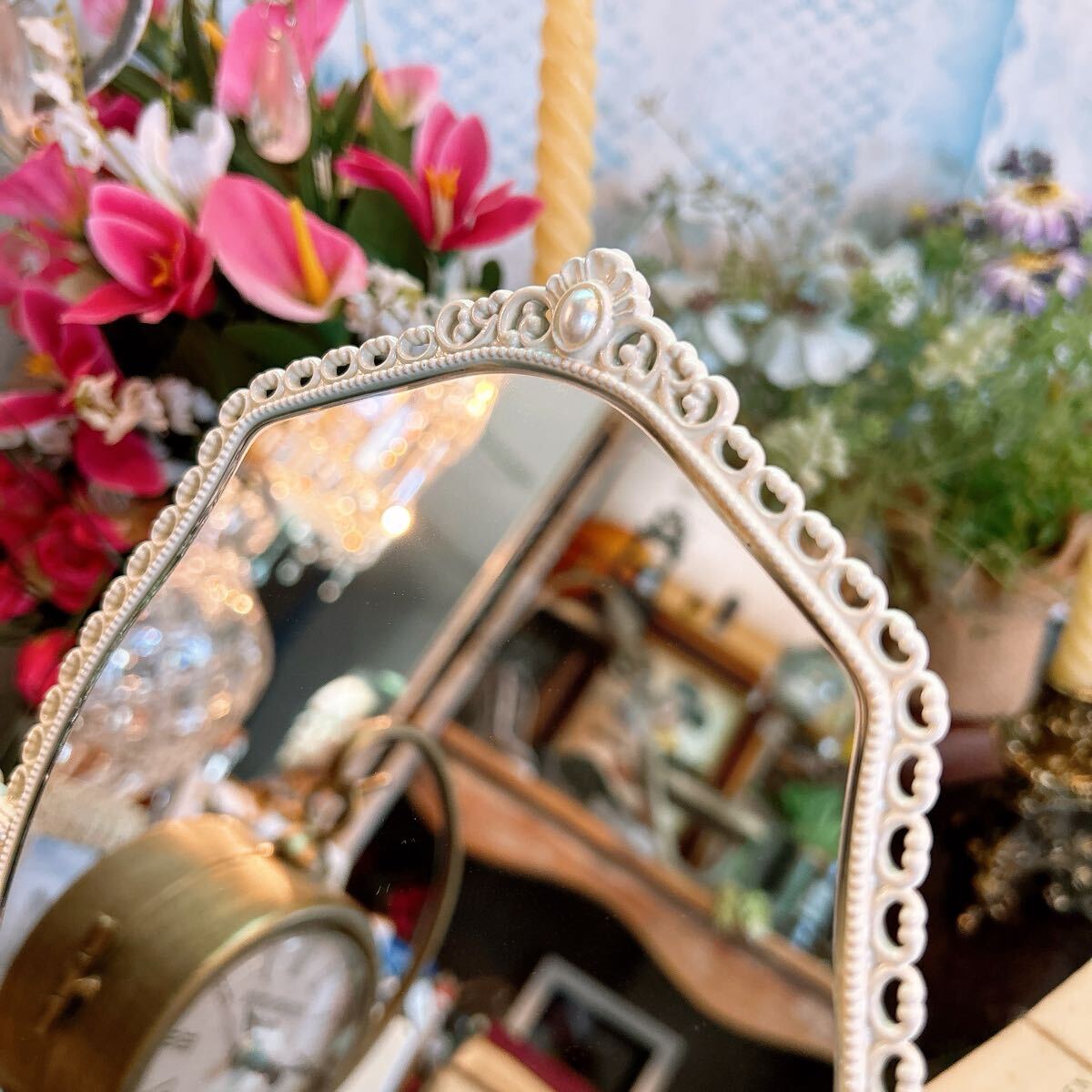 ミラー縁のパールビーズが上品でエレガント♪