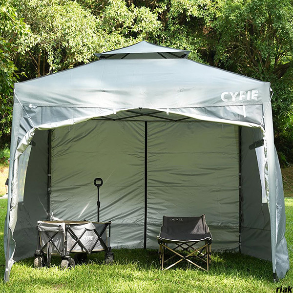 サイドシート4枚が付属しており、2つのドア(ファスナー付き)と2つの窓(網付き)でプライバシーを