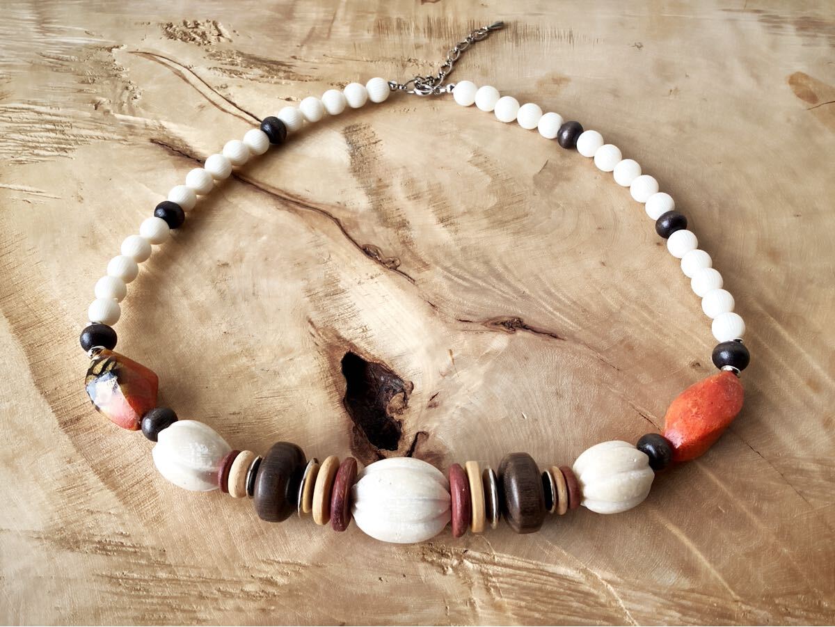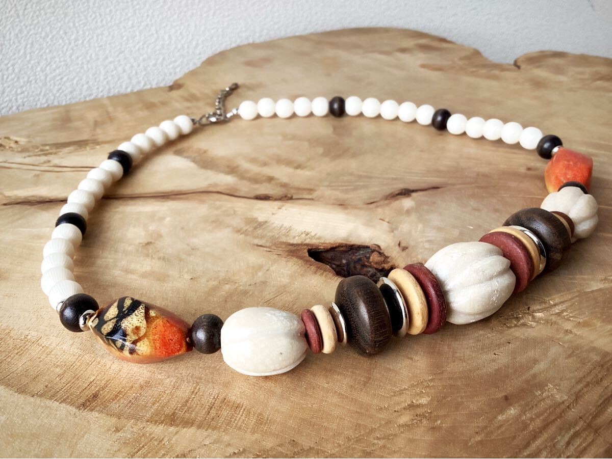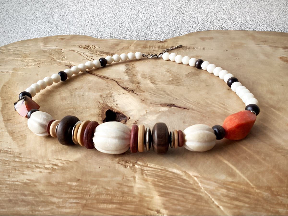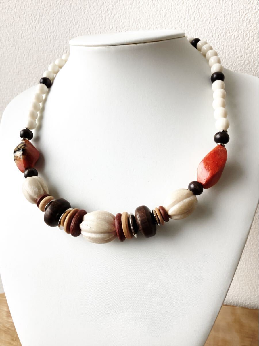 【天然素材ウッドビーズ ネックレス】木製ビーズ アフリカン ヴィンテージ レトロ | |||