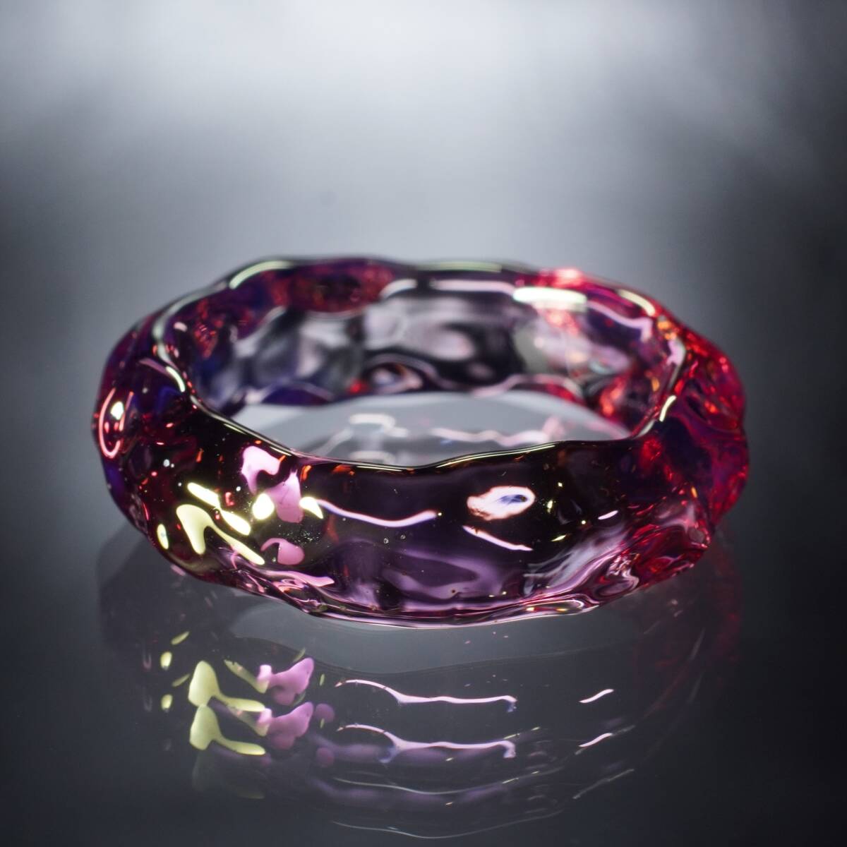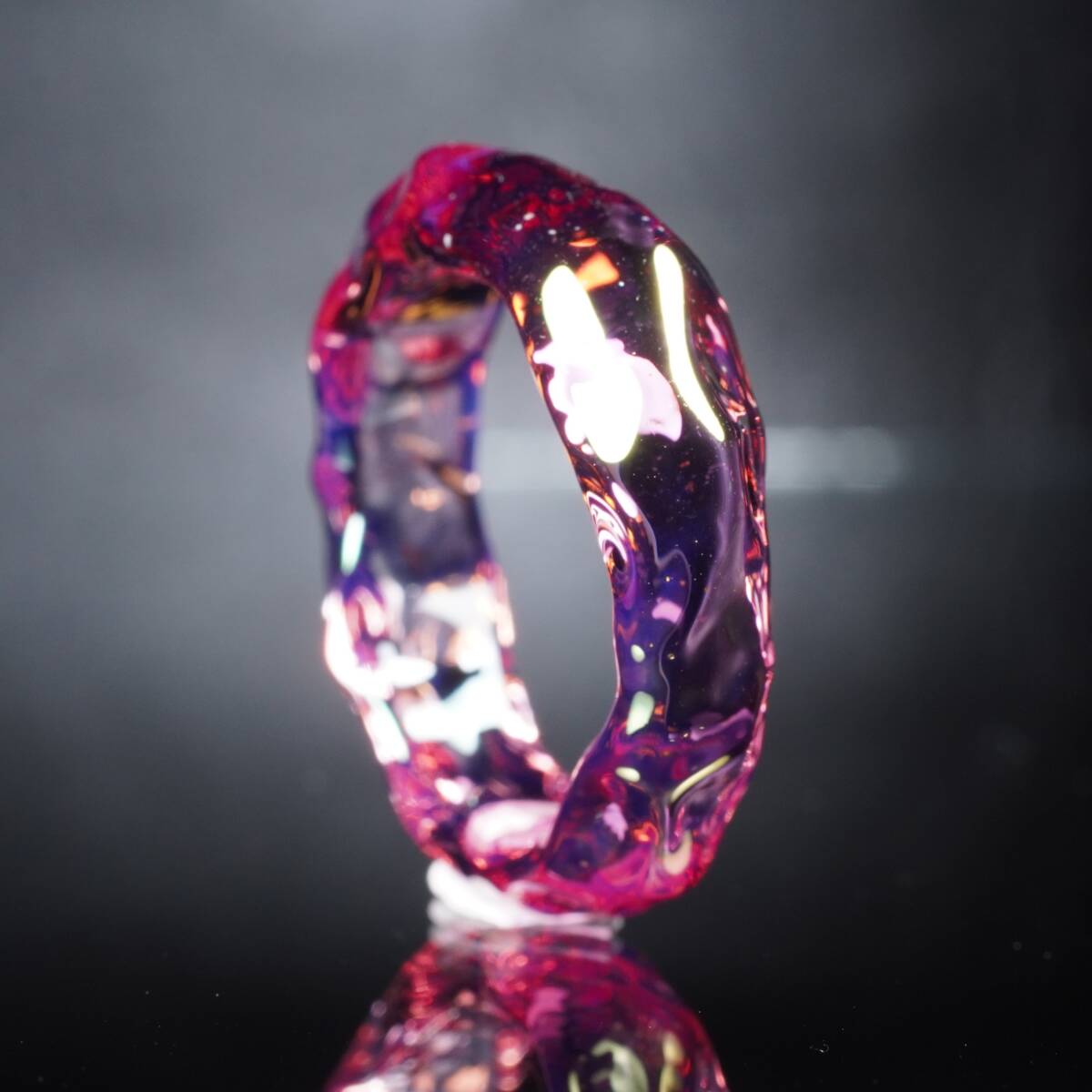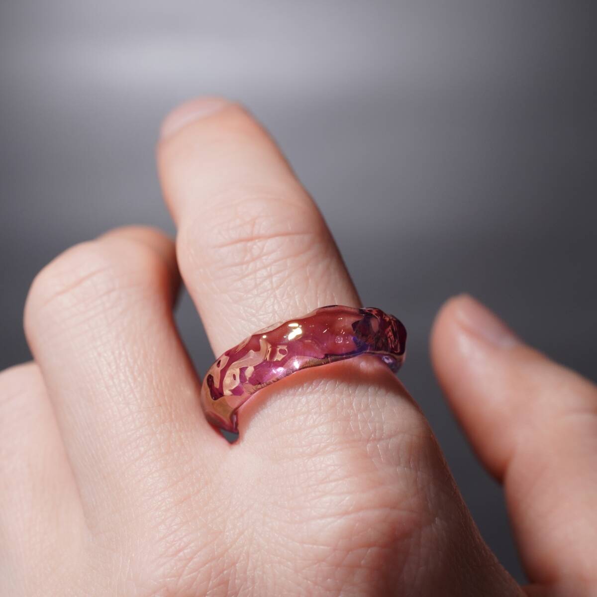 氷をイメージして制作した硬質ガラス製の指輪です。