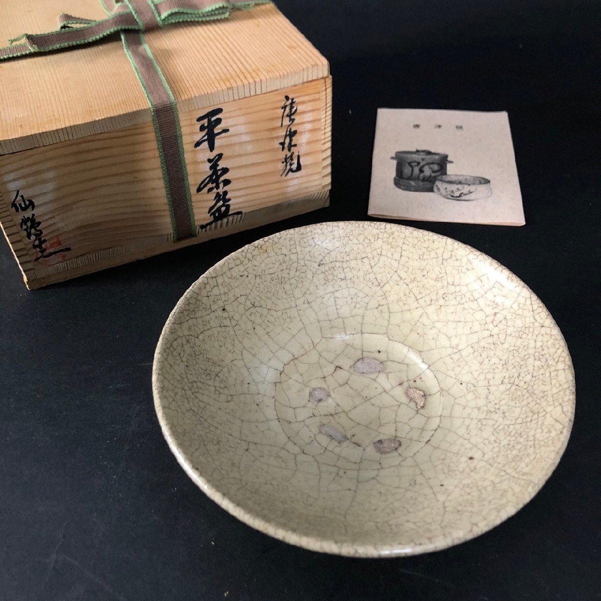 SW0227-28-3 唐津焼 仙鶴窯 平茶盛 時代物 茶碗 萩焼 皿 陶芸 プレート 高さ5.5㎝ 直径16㎝ 60サイズ