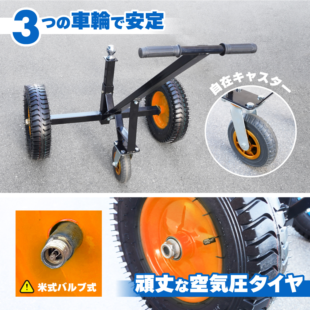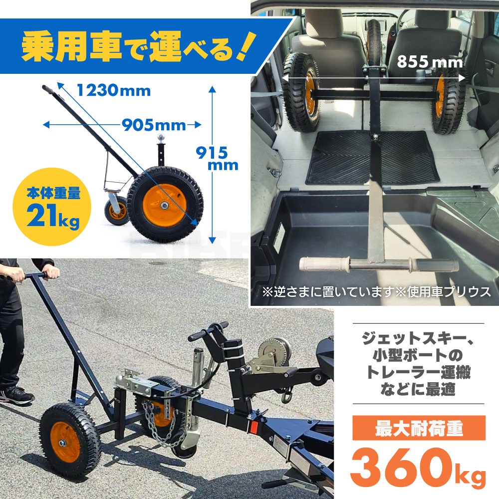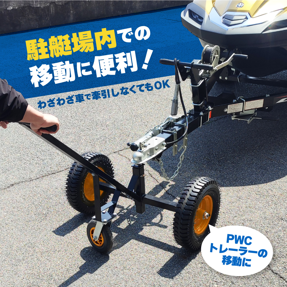 ●PWCトレーラーなどを簡単に移動できるドーリーです ●ちょっとした駐艇場内での移動に便利 ●頑丈な空気圧タイヤと自在キャスターで安定して動かすことができます ●ヒッチボールの高さは45mm間隔で調整でき、ストロークは180mmです ●PWC(ジェットスキー、水上バイク、マリンジェットなど)や小型ボートなどを乗せたトレーラーを動かす際に大活躍します ●乗用車でも後部座席を倒すと乗せることができ、ワゴン車や軽バンでは楽に運べます ●お客様での組み立てが必要な商品です |