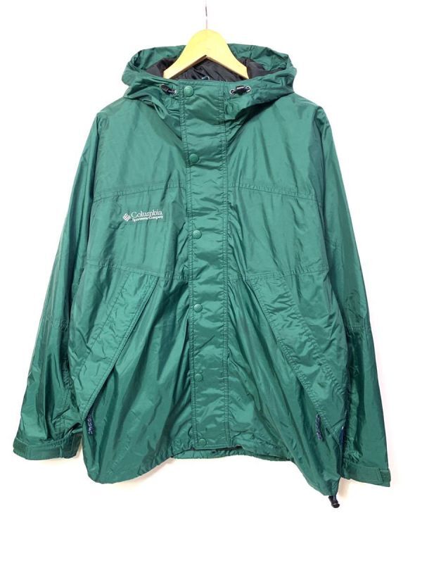 ■パッカブル仕様 Columbia コロンビア フード付き ナイロンジャケット 古着 アメカジ アウトドア マウンテンパーカー グリーン サイズM■