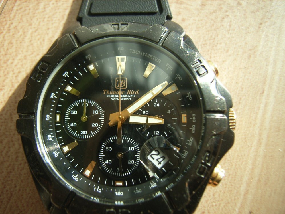 男性用☆サンダーバード☆ブラックケース☆クロノ付き☆クオーツ稼働品