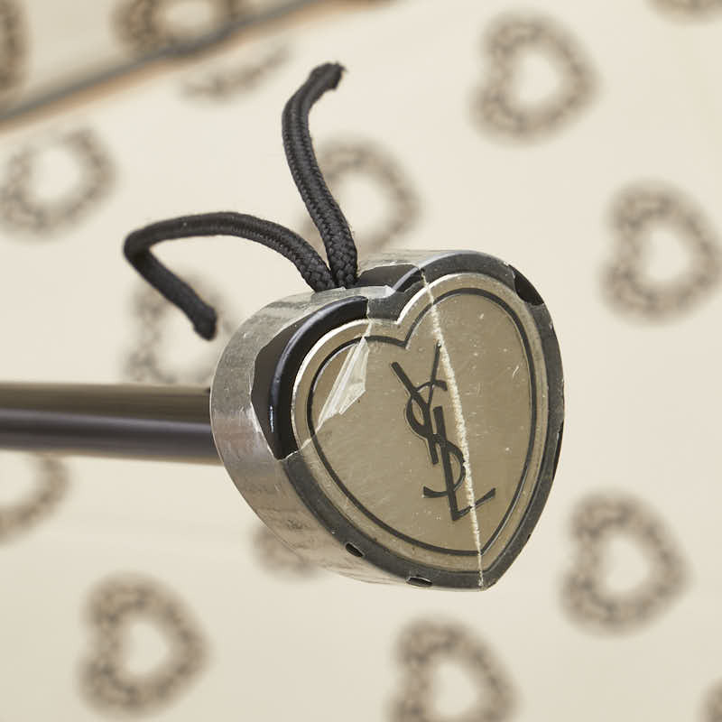 サンローラン YSLロゴ ハート モチーフ 折りたたみ傘 ベージュ ブラック ナイロン レディース SAINT LAURENT 【中古】