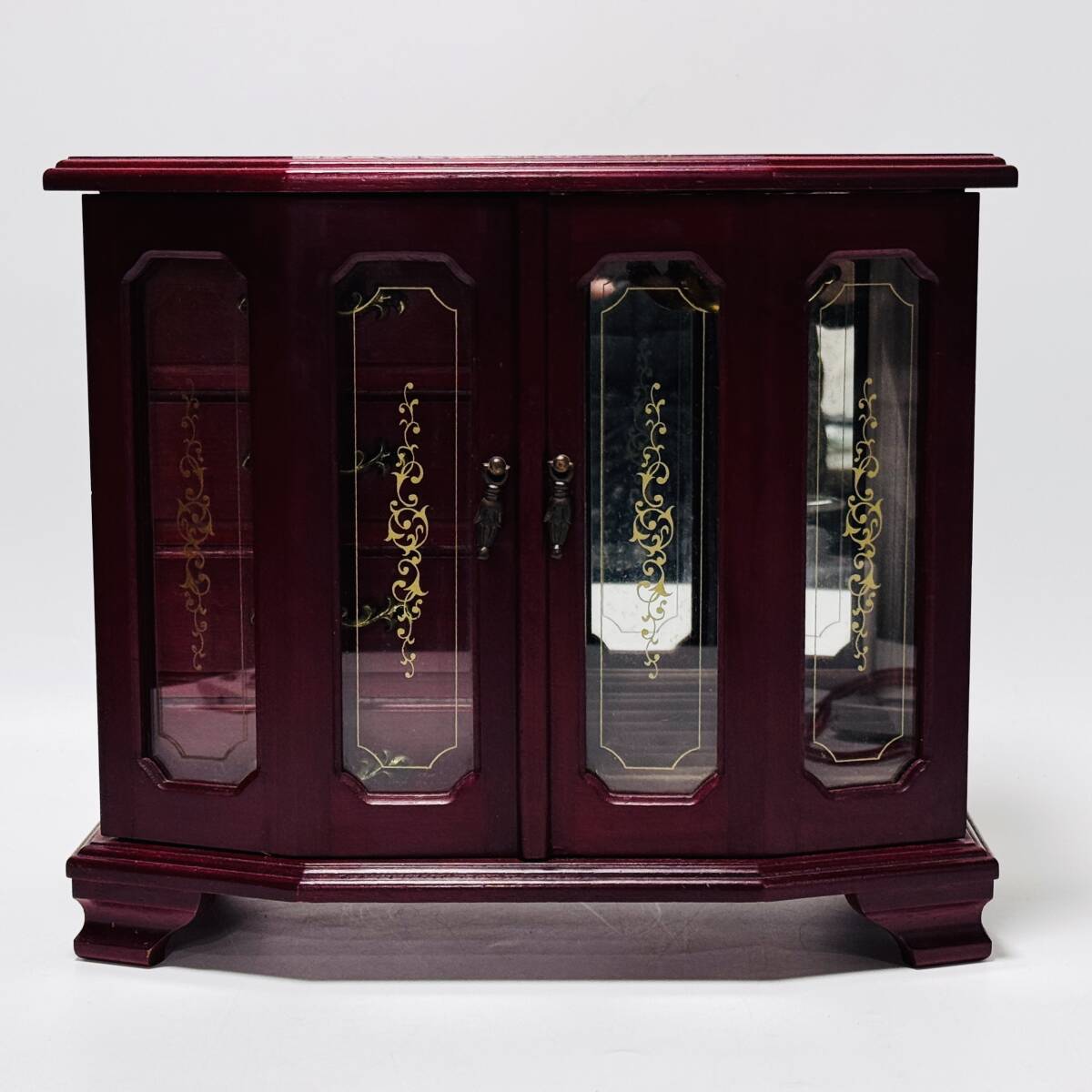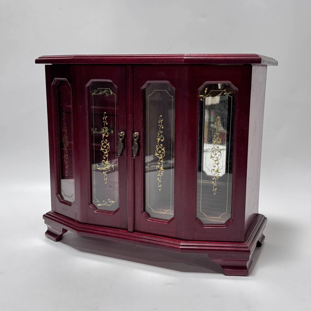 【61318Q】木製 オルゴール付き ジュエリーボックス 観音開き 引出し リング指 ネックレス掛 幅33.5×奥行17×高さ29㎝ 経年保管品 現状品