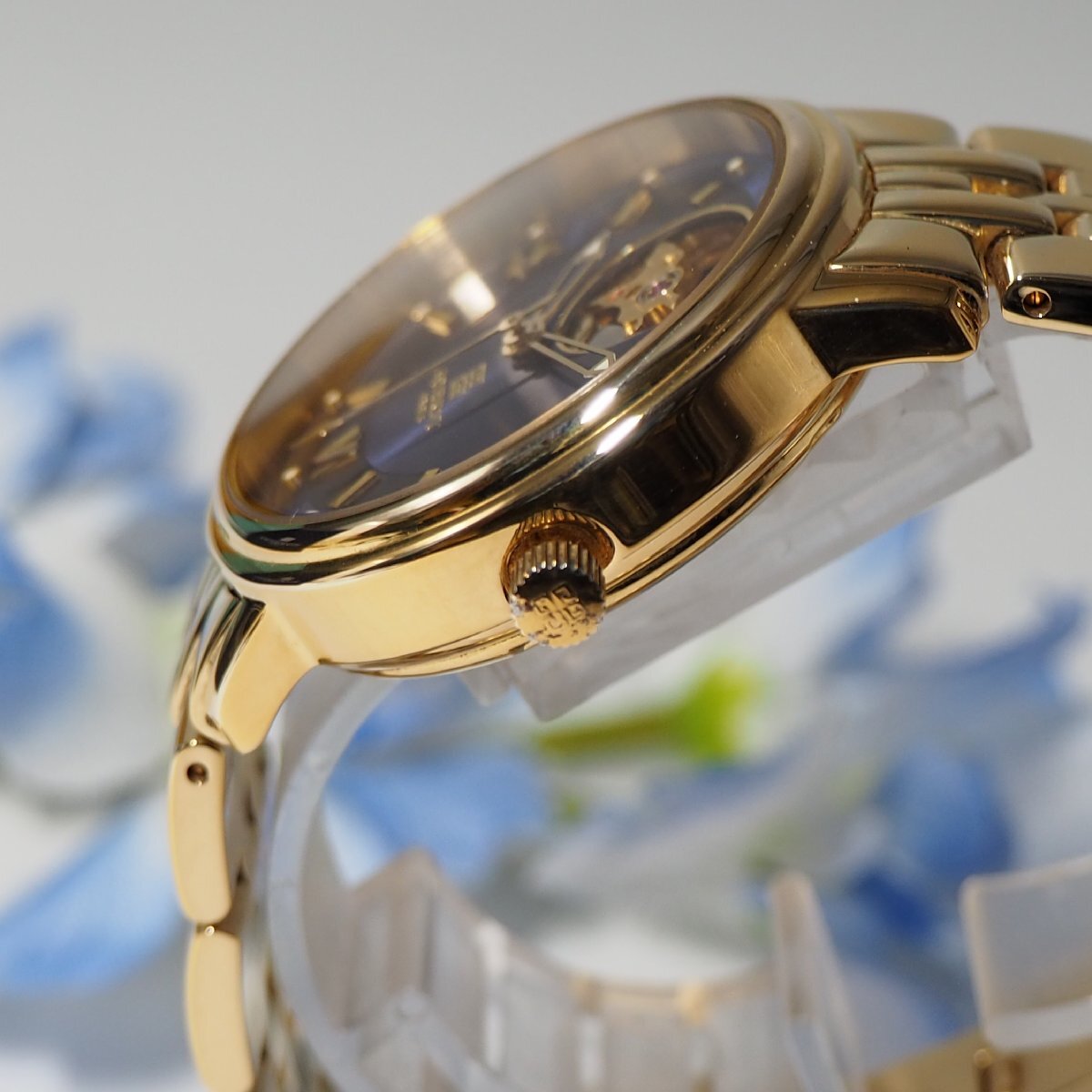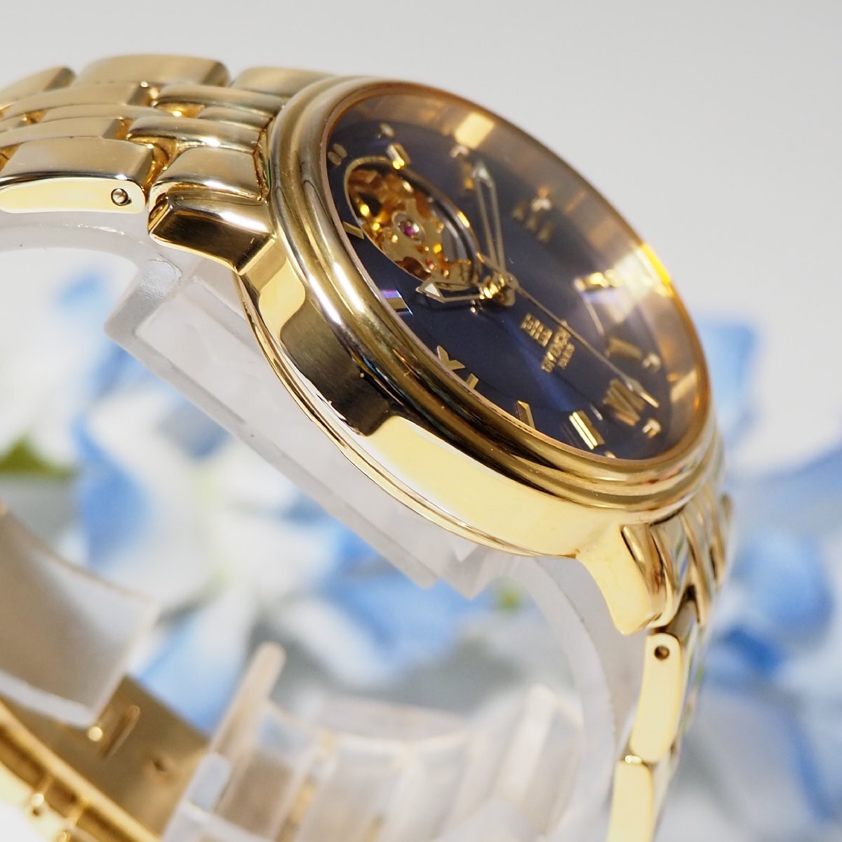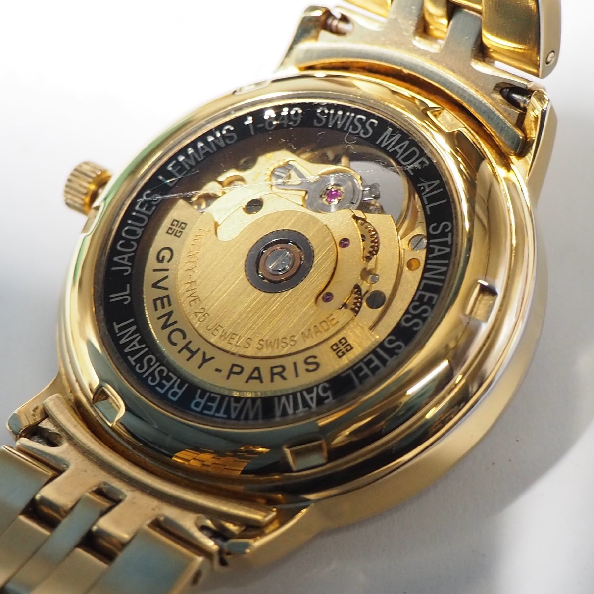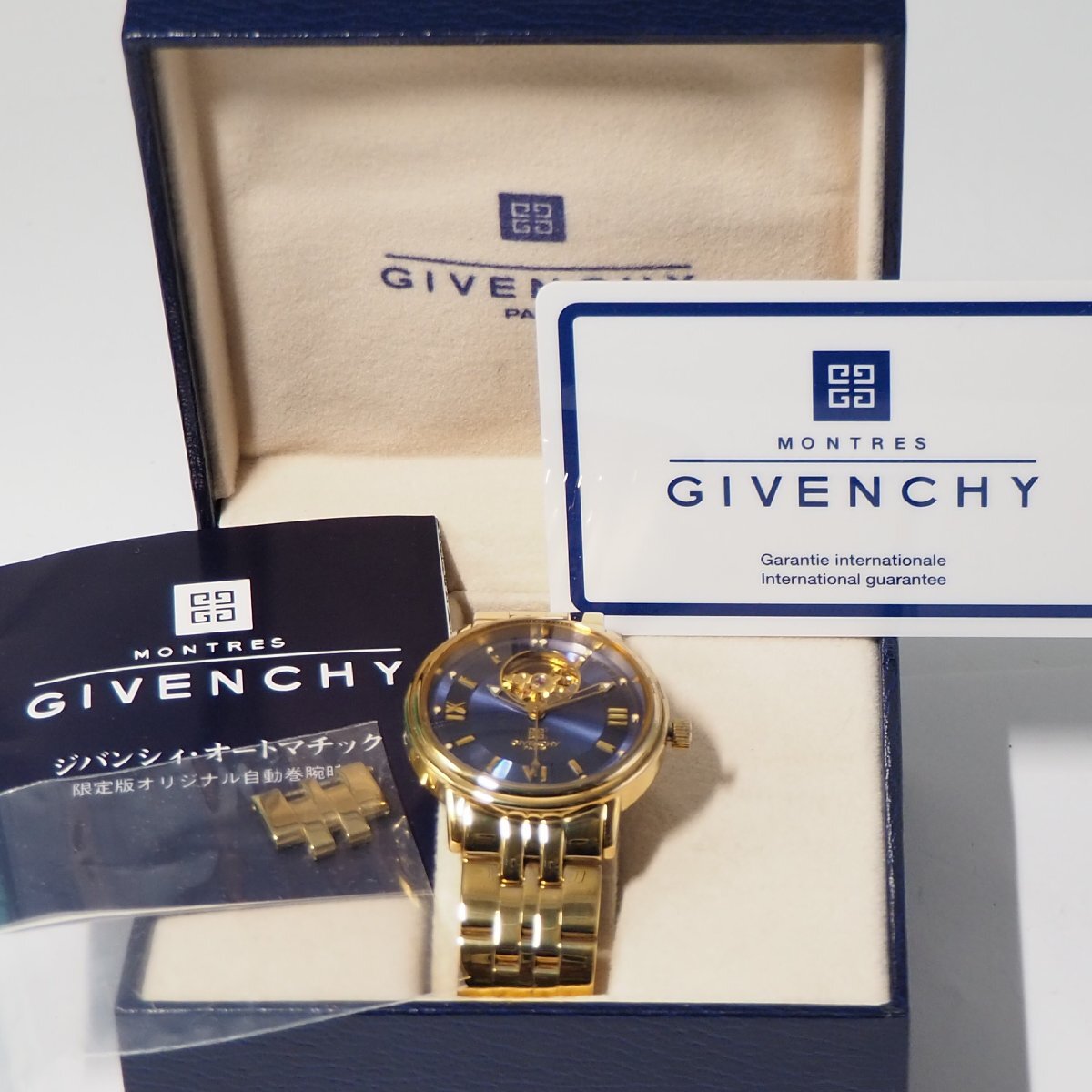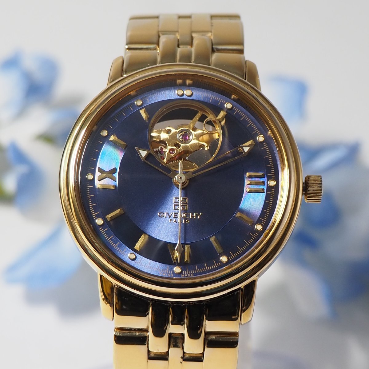 ★★★★ 希少 ジバンシイ GIVENCHY ネイビー文字盤 自動巻 裏スケ ドーム風防 メンズ 腕時計 箱 ゴールド F443 中古★★★★ |