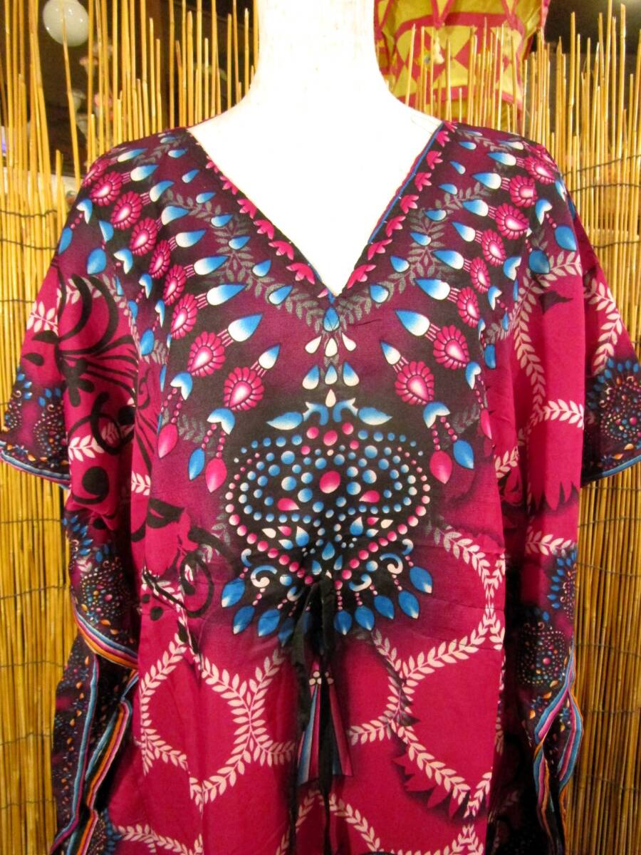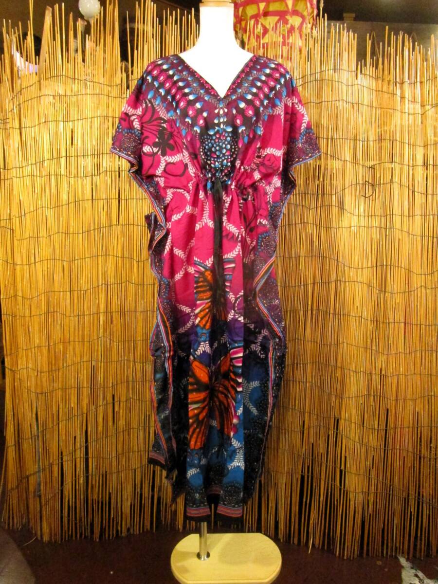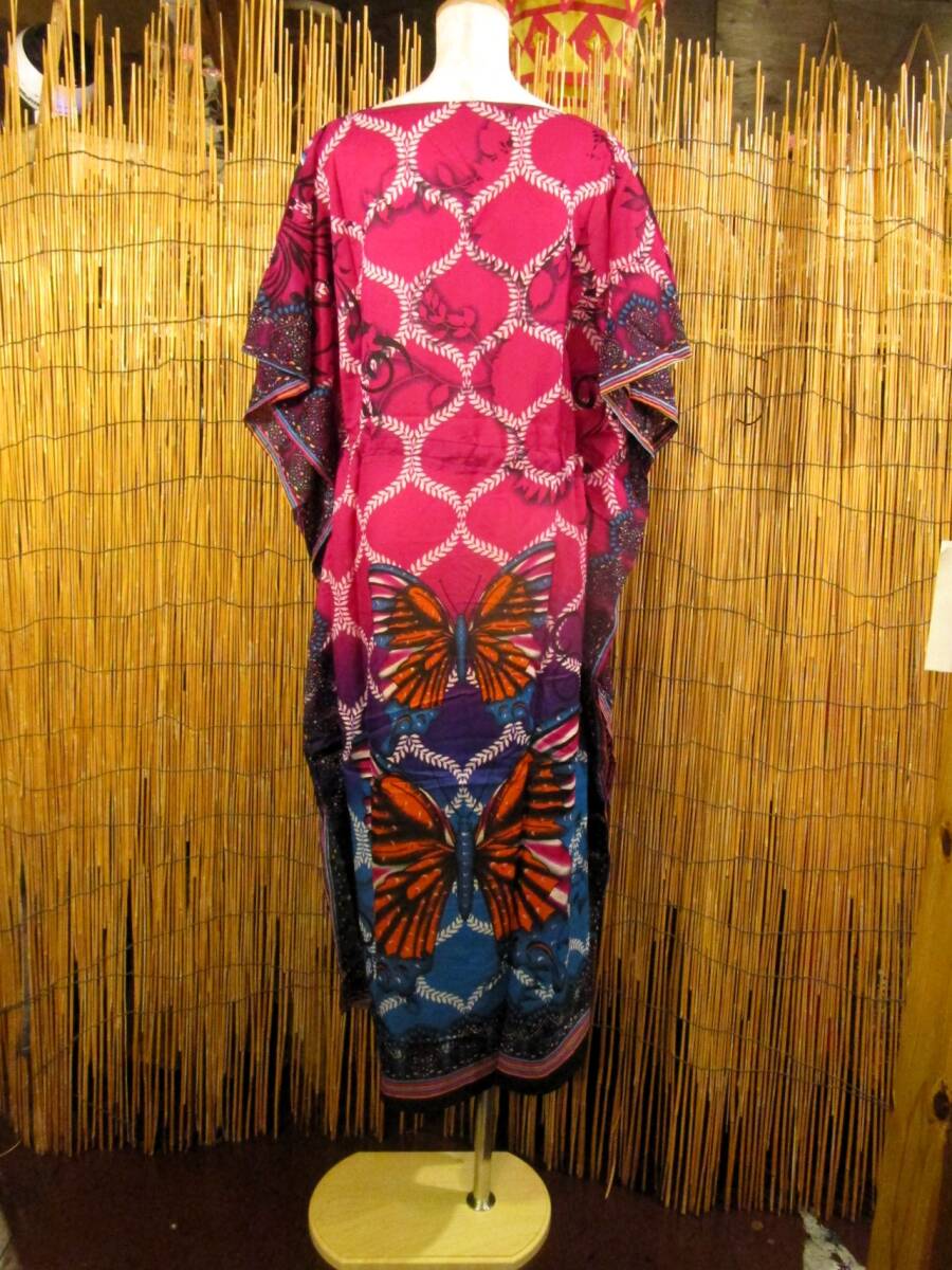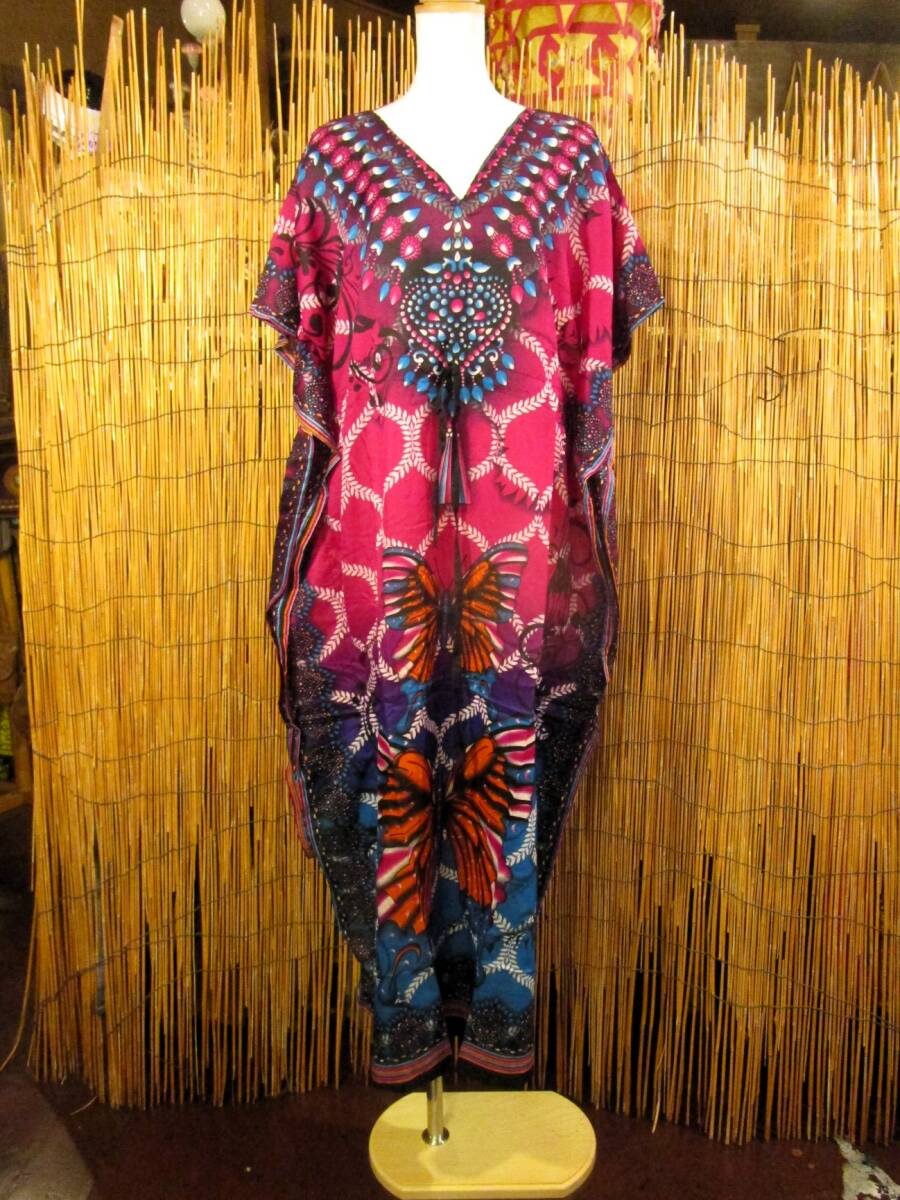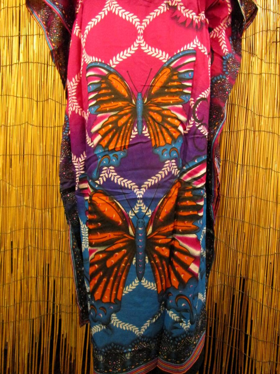①新品*薄手ビスコース素材*ゆったりサイズ *妖艶*蝶々プリント*ガラベーヤ*ポンチョ風*マキシ丈*ワンピース*ベリーダンス