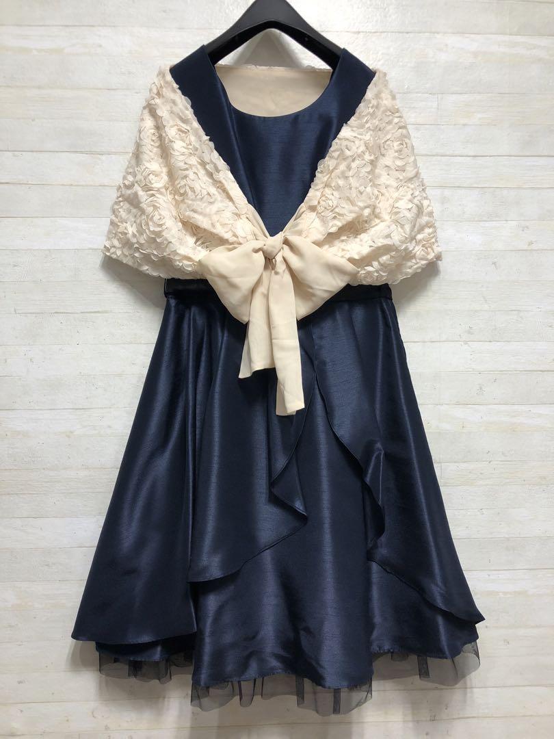 新品☆11号M♪紺系パーティワンピース&アイボリー系ケープのセット〇D592