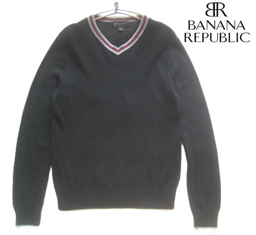 美品!!バナナリパブリック BANANA REPUBLIC*春夏モデル ラインデザイン 薄手コットンニットセーター S 実寸M 黒 バナリパ チルデン