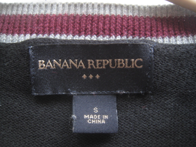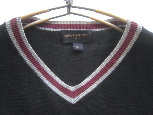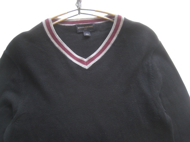 バナナリパブリックの春夏モデル ラインデザイン 薄手コットンニットセーターです。胸元はVネック、袖はセットインスリーブになっています。