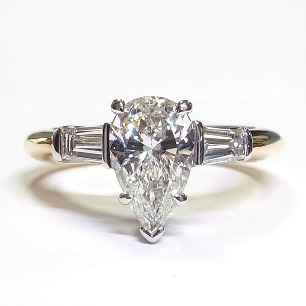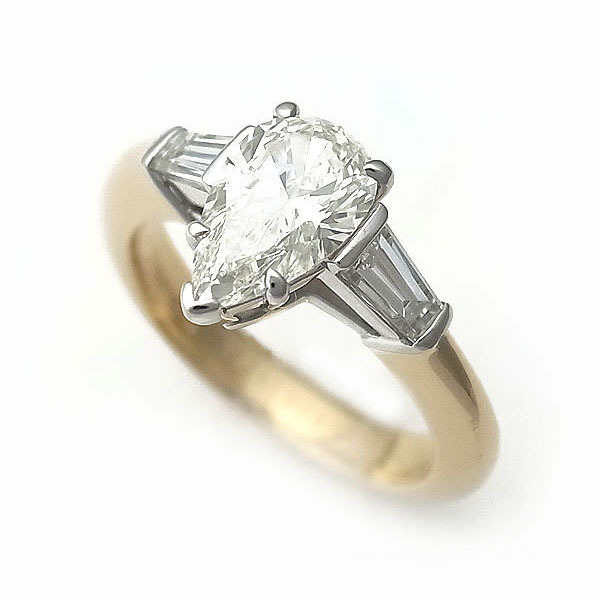【緑屋質屋】ティファニー ダイヤモンドリング ペアシェイプ&テーパードバケットカット 1.13ct K18YG/Pt950【中古】