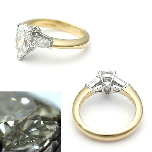 ペアシェイプダイヤに肉眼では視認できない微小のカケがございます(画像参照)。