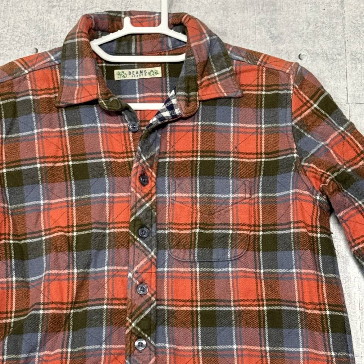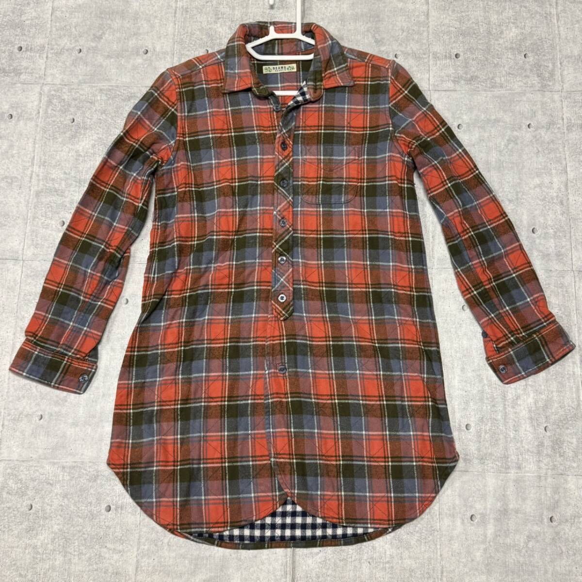 BEAMS HEART ロング丈 ネルシャツ キルティング ビームス ハート  ハイクオリティ 裏地デザイン切替え ロゴボタン フリーサイズ 早4779