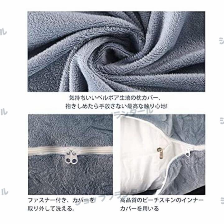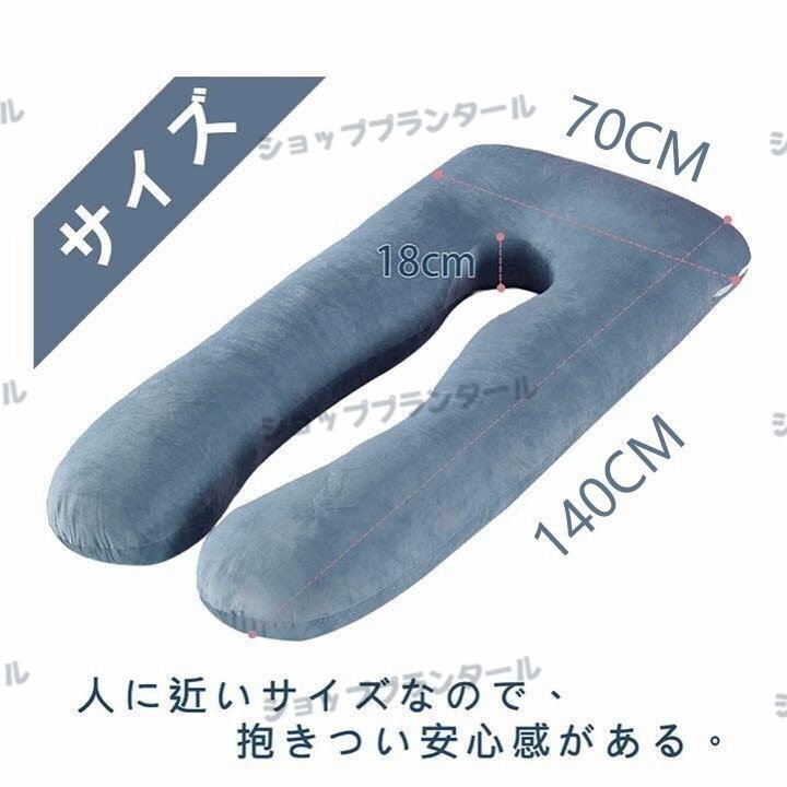 【サイズ?素材】140X70X18cm .140cmの長さがあるU字型タイプ。男女問わずおすすめのビッグサイズで、安心感の得られるしっかりとした抱き心地が魅力です。 カバー:ベロア生地。詰め物:ポリエステル。