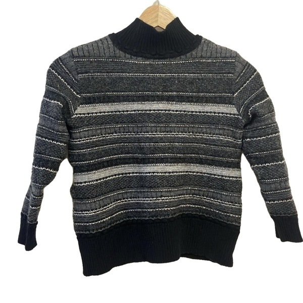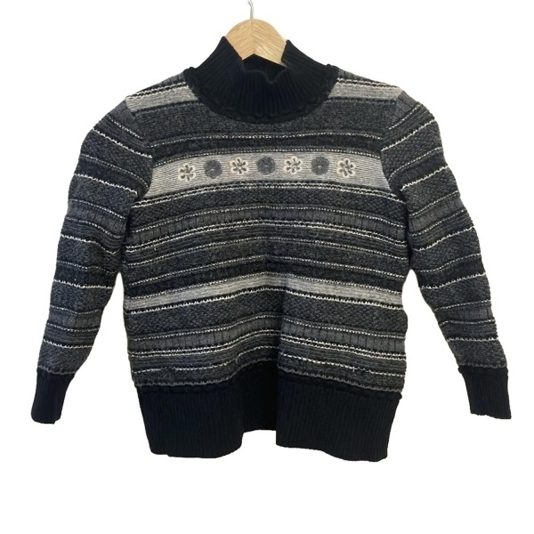 レリアン Leilian 長袖セーター/ニット サイズ9 M - 黒×ダークグレー×グレー レディース ハイネック/ボーダー/フラワー(花) トップス