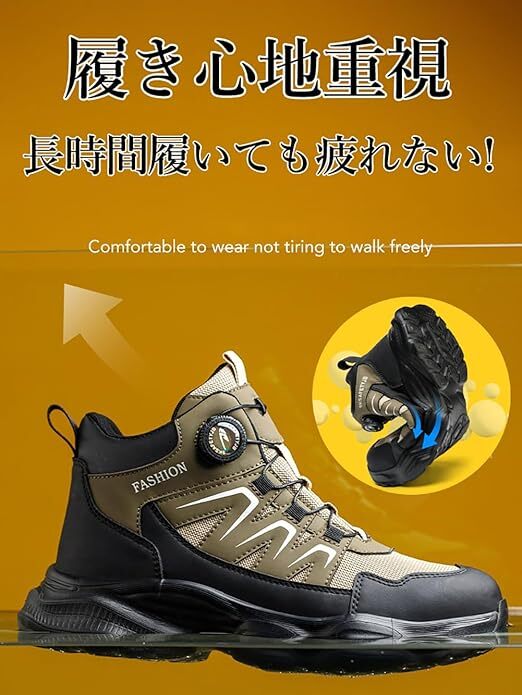 安全靴 ダイヤル式 ハイカット 作業靴 通気性 あんぜん靴 軽量 鋼先芯入り 耐滑 耐摩耗 厚底 サイズ:27cm