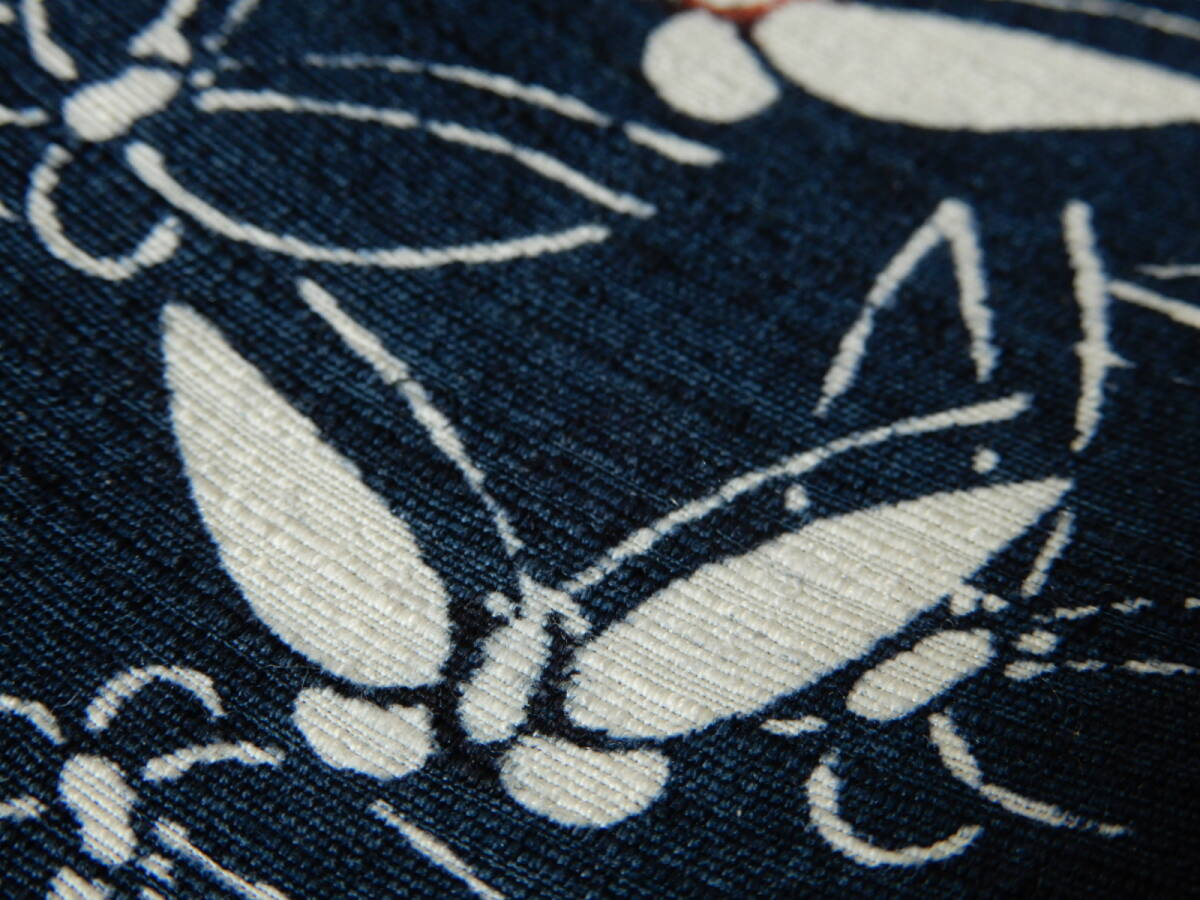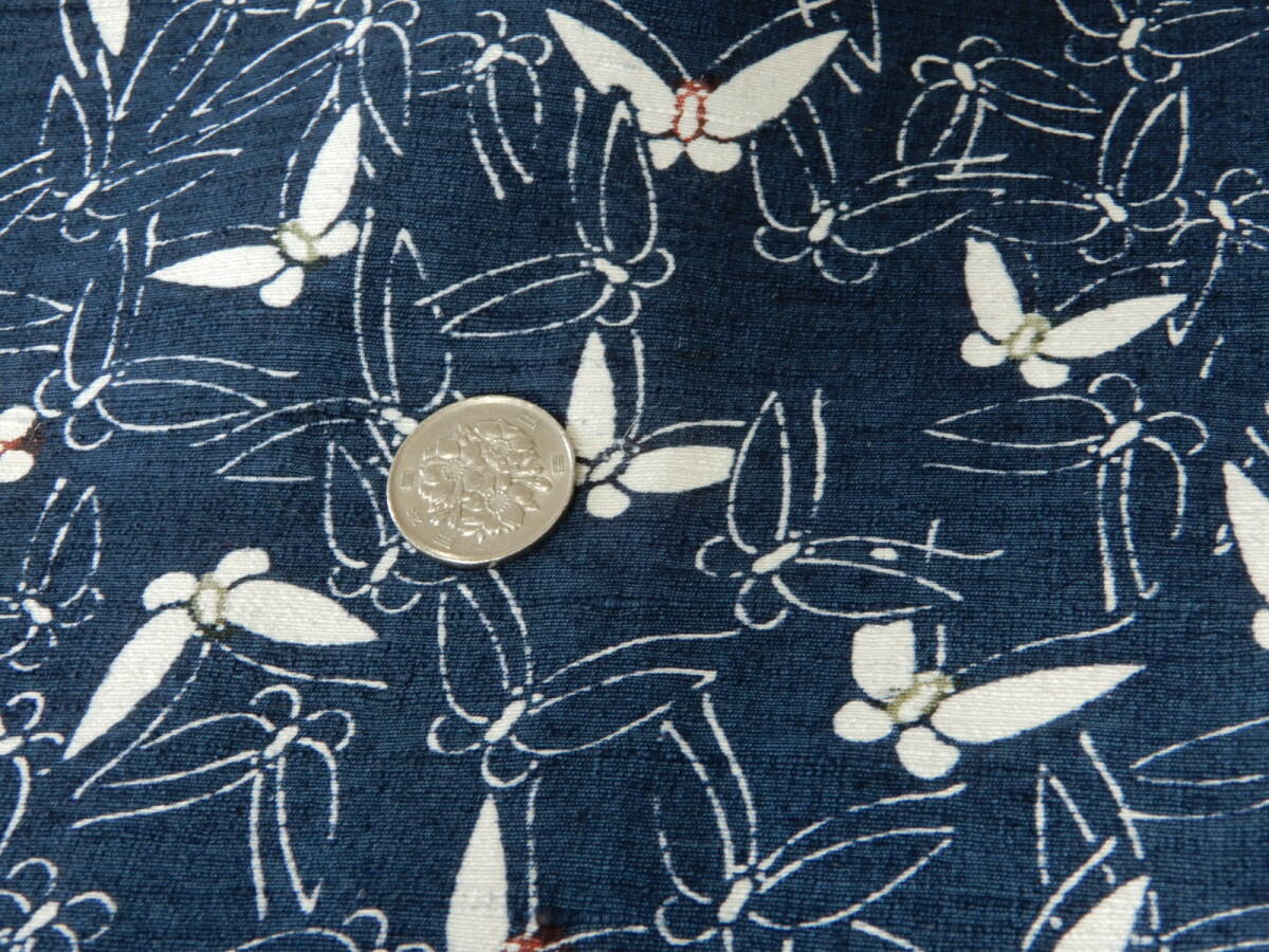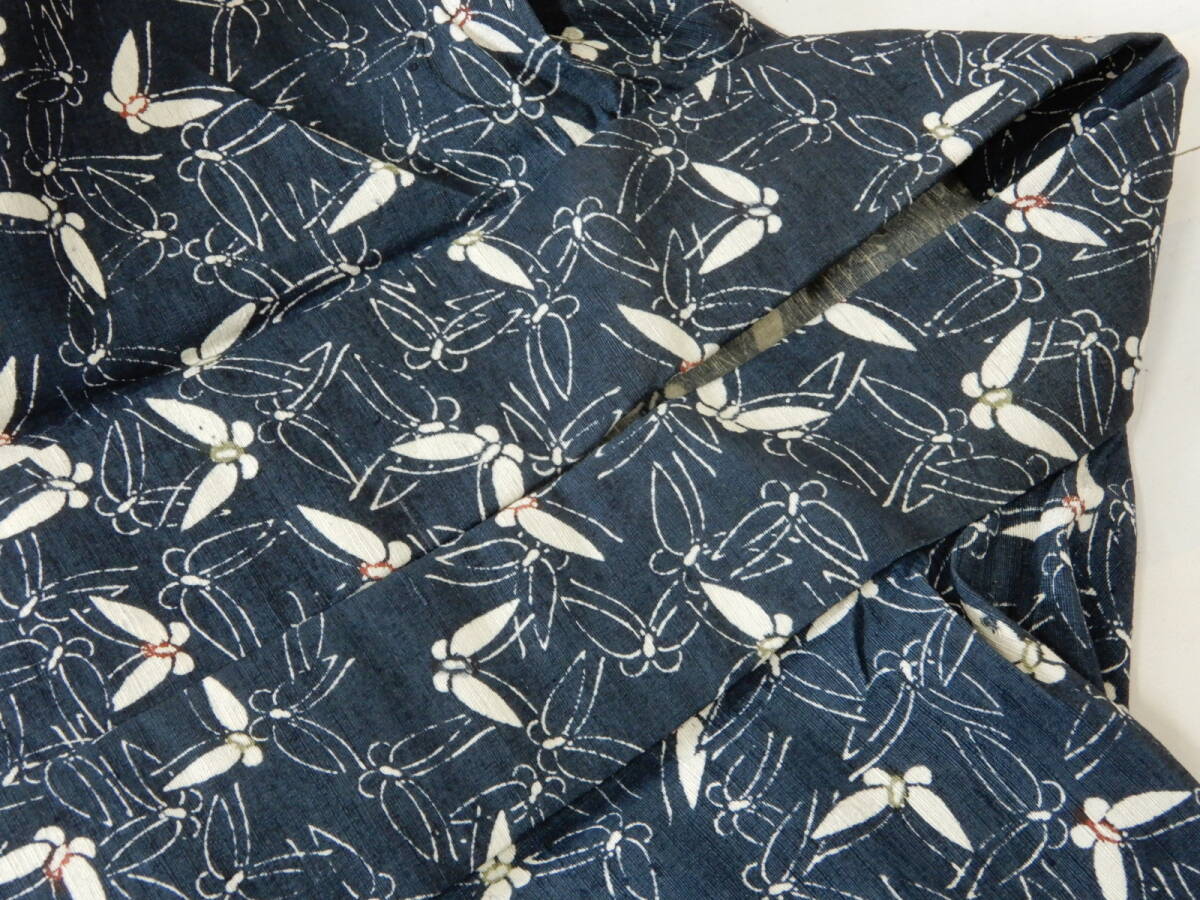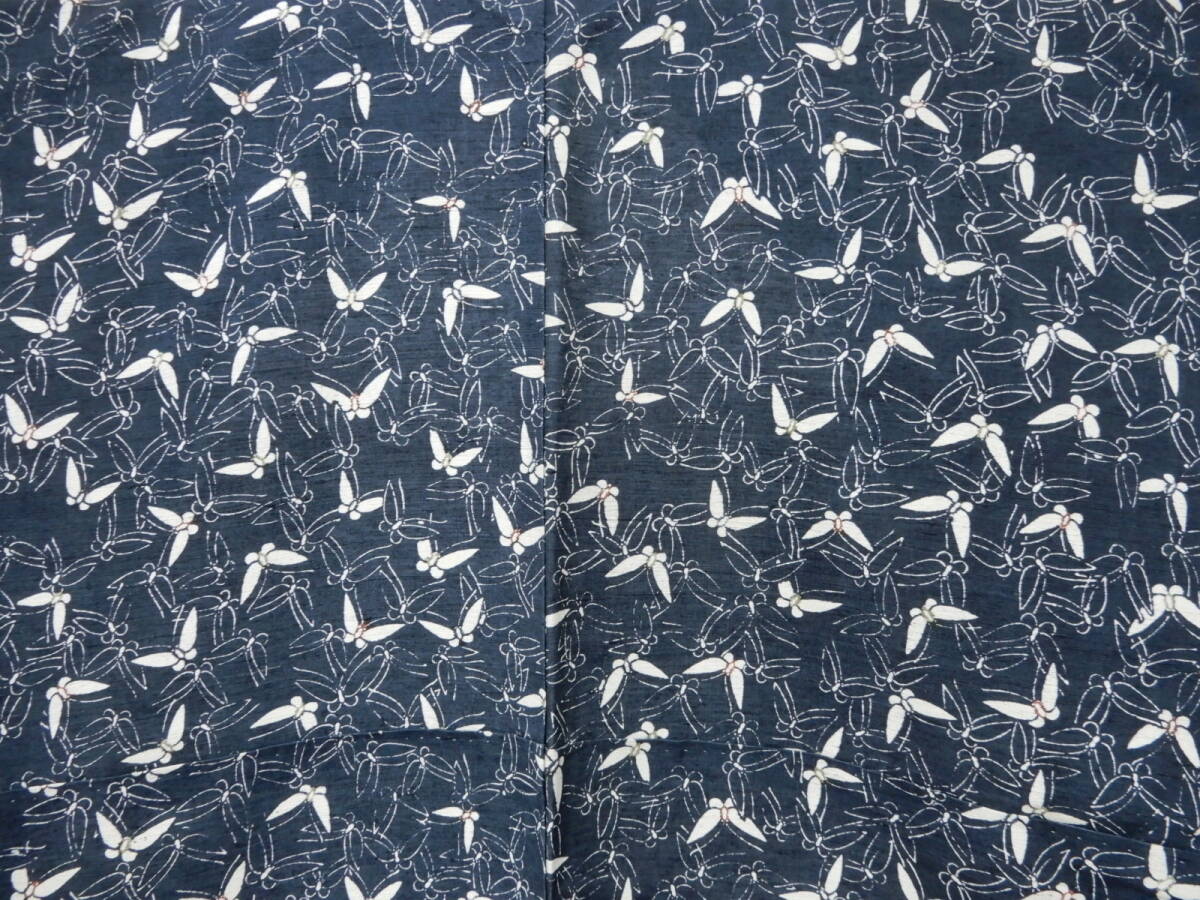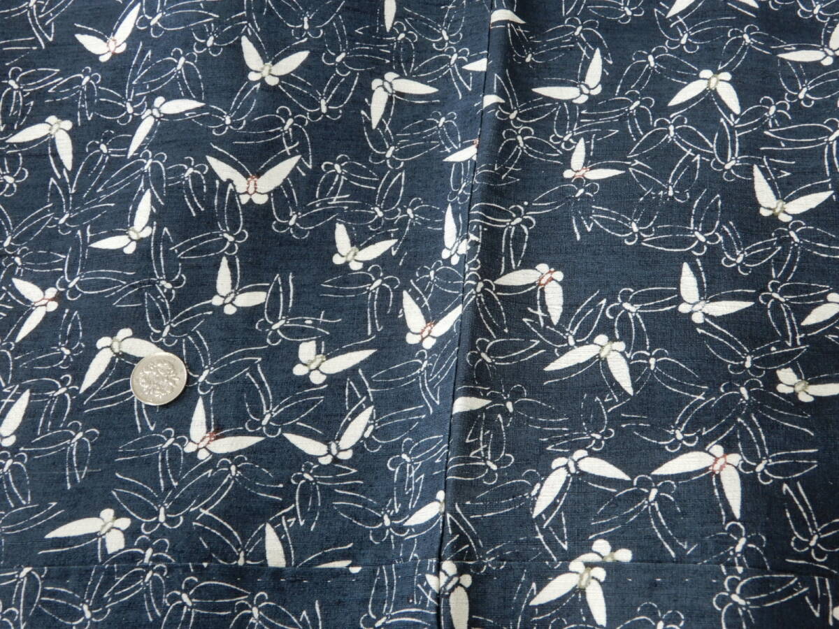 <銀の斧>正絹・紬地型染め小紋単衣着物・蝶・顔料