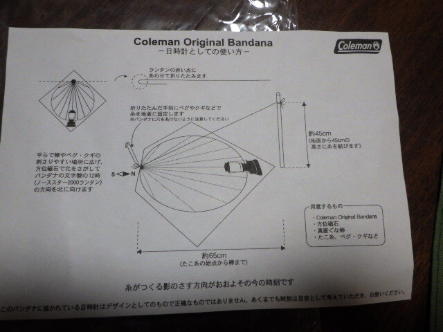 新品未使用 コールマン オリジナル バンダナ 日時計として使えます。説明書付き