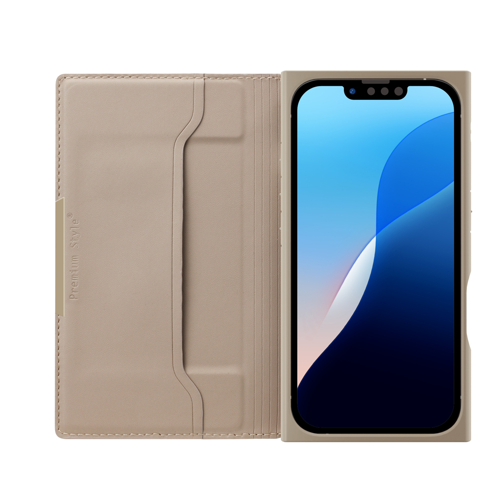iPhone 16e 用 クリア フリップカバー ベージュ PUレザー ストラップホール付き マグネットロック アイフォン