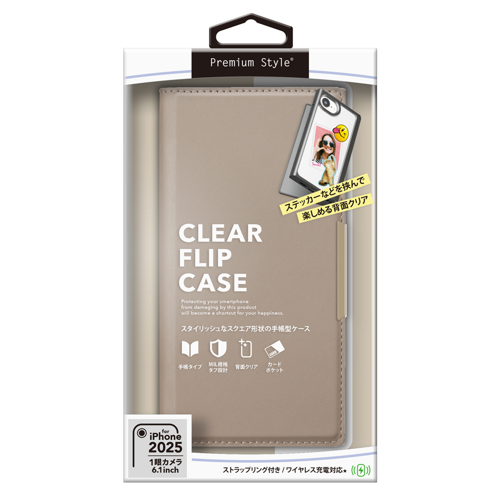 iPhone 16e用 クリアフリップケース [ベージュ]