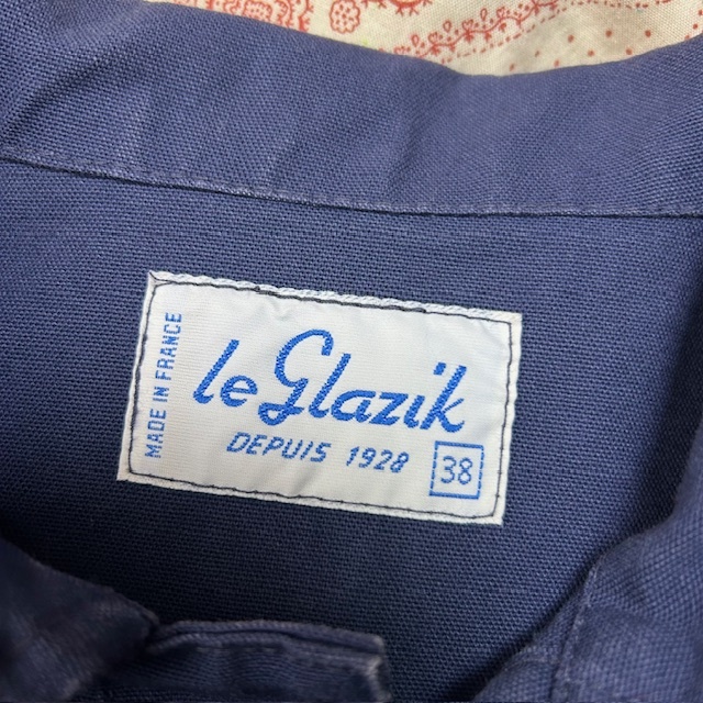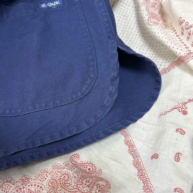 Le Glazik フランス製 コットンキャンバス カバーオール 38 紺 ワークジャケット オールド ユーロワーク ルグラジック フレンチワーク 春秋 S~M ●159