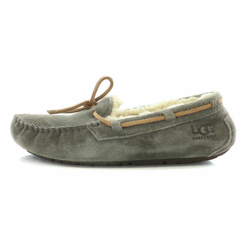 アグ オーストラリア Dakota ダコタ モカシン スリッポン フラットシューズ スクエアトゥ スエード リボン US5 グレー 5612 /BB ■OF