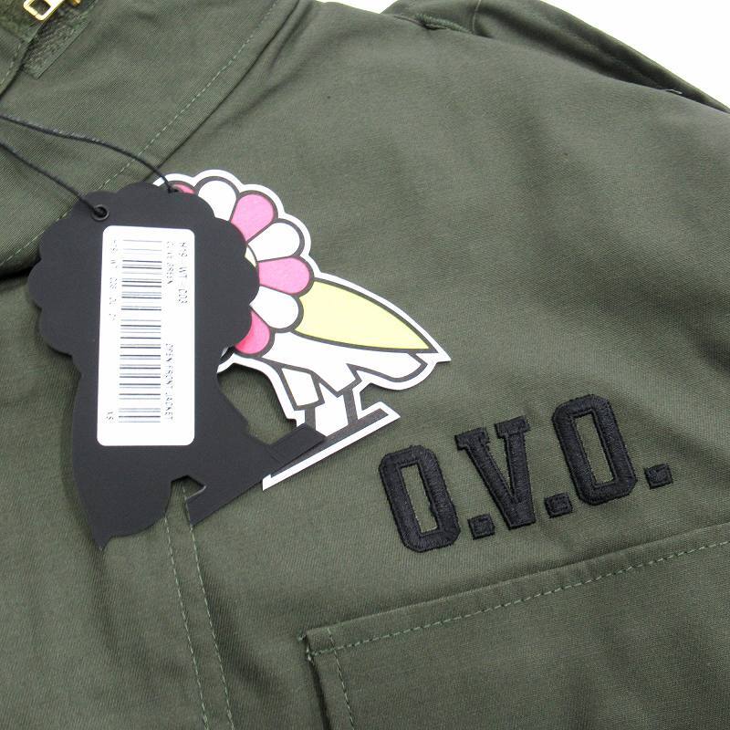 【仕様】品番 H19-WT-C03 M-65ジャケットの背面にOVOのアイコンであるフクロウと村上隆のアイコンフラワーを合体させたキャラクターをデザイン フロントにはO.V.O.ロゴ刺繍