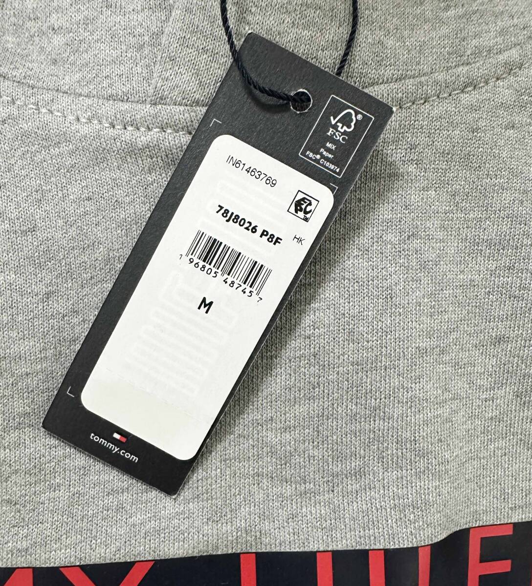 新品 M ★ トミーヒルフィガー メンズ スウェット ロゴ パーカー グレー