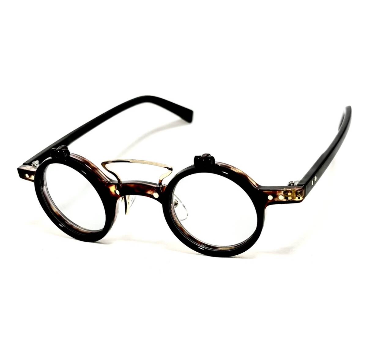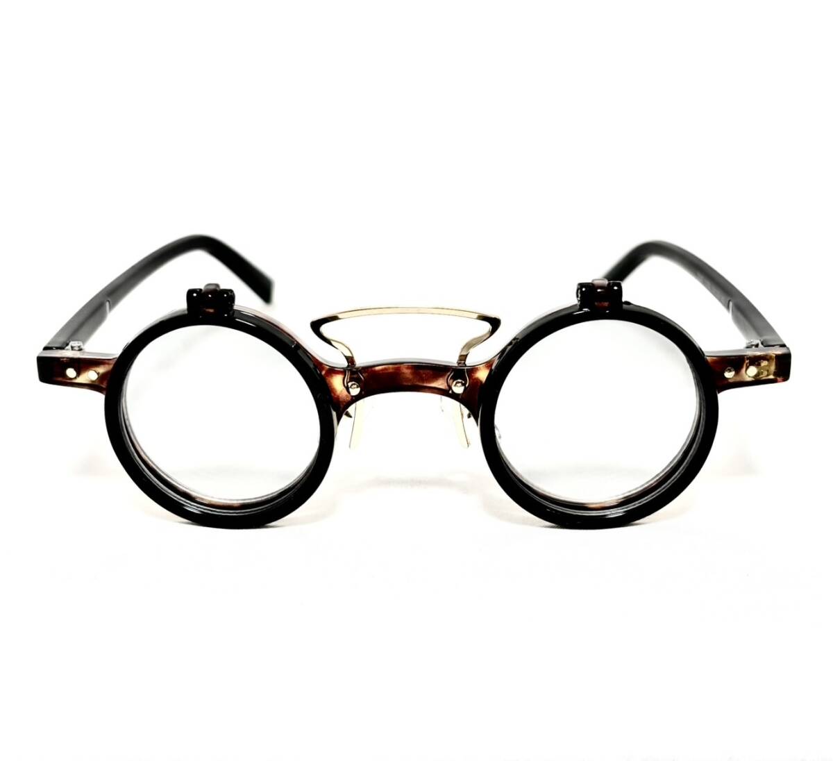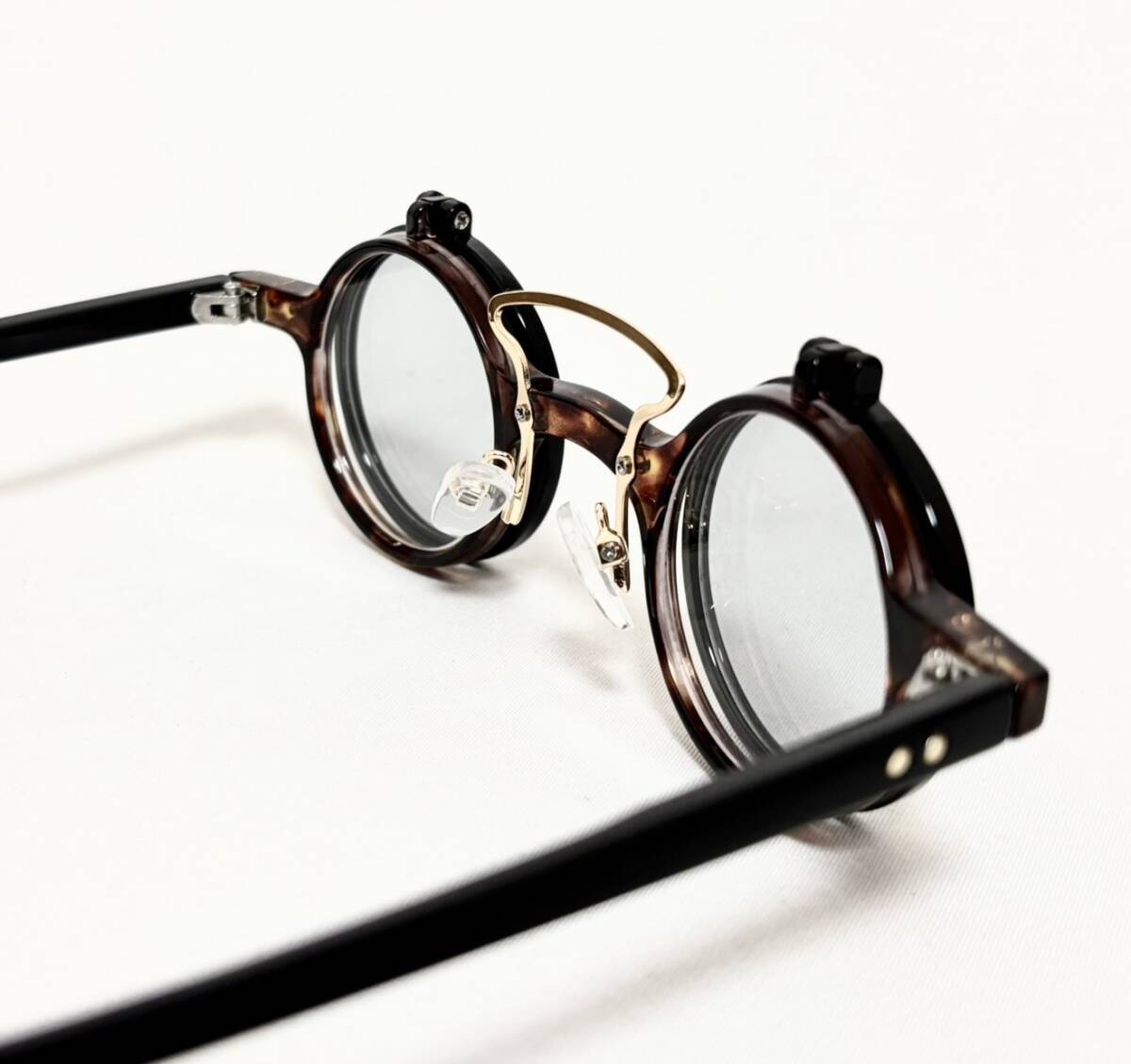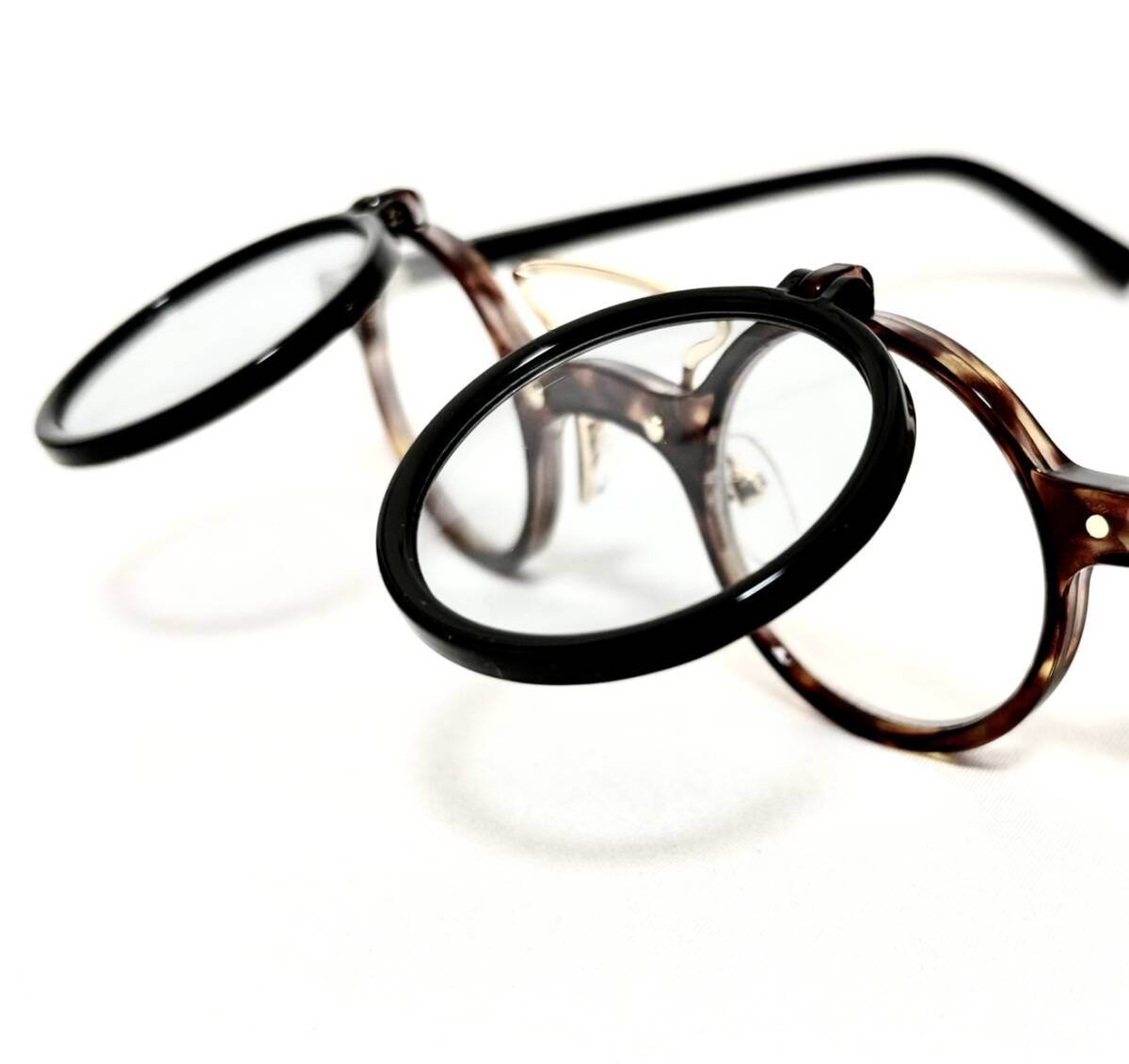 個性的でレトロモダンな跳ね上げ式Wレンズのアンティーク調サングラスです。