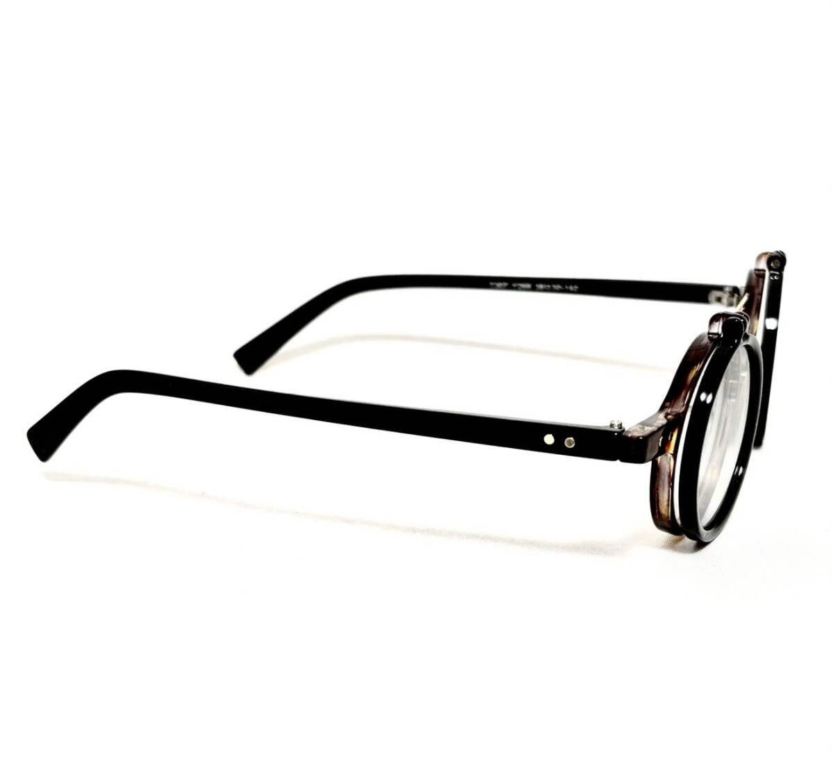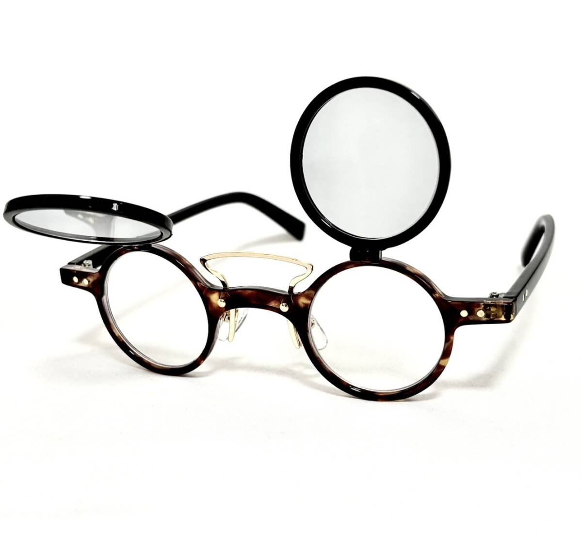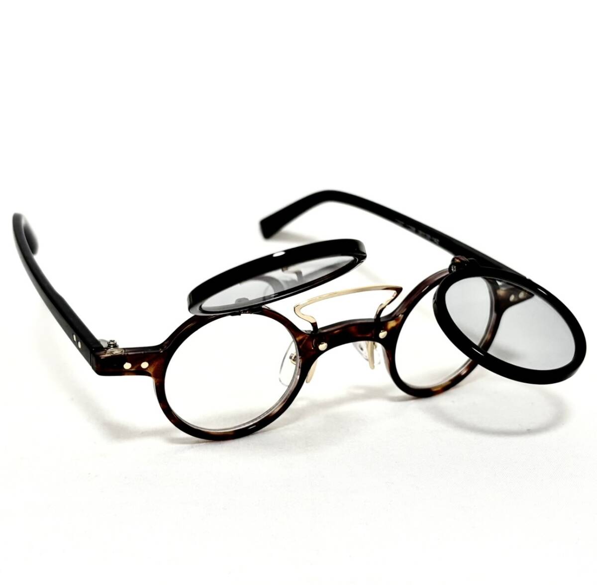 跳ね上げ式 ラウンドサングラス ダブルレンズ レトロ アンティーク 探偵眼鏡 べっ甲カラーフレーム スモーク&クリアーレンズ