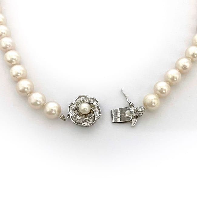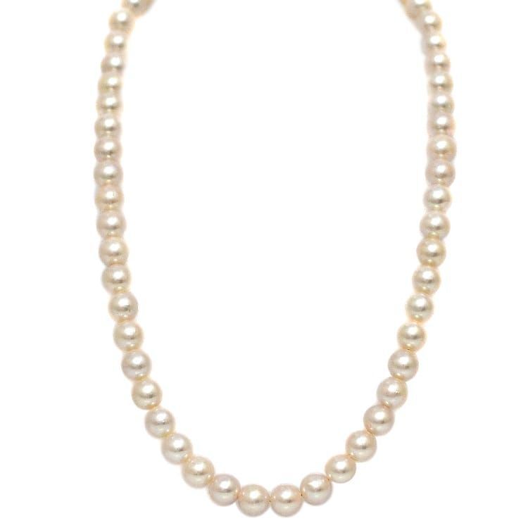 | コメント | バランスの良い8mmサイズのパールアクセサリー。ネックレスのクラスプ部分はデザインにこだわったバネ式で、後ろ姿も美しく上品に魅せてくれるお品物です |