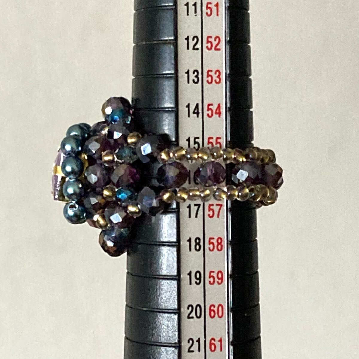 ビーズ リング 指輪 ハンドメイド スクエアラインストーンとパールが可愛い3重リング パープル×ブルー 15ー17号です。