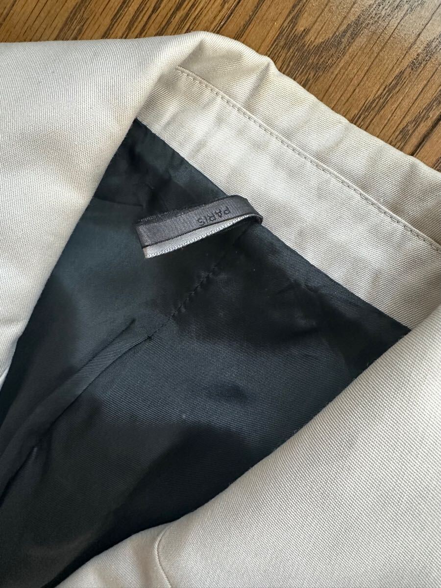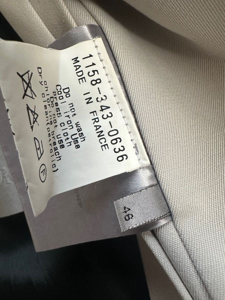 片方しかないフロントプリーツ、長く入ったスリット、デザインだけの袖元のベルト。エディの当時のセンスが光る逸品。