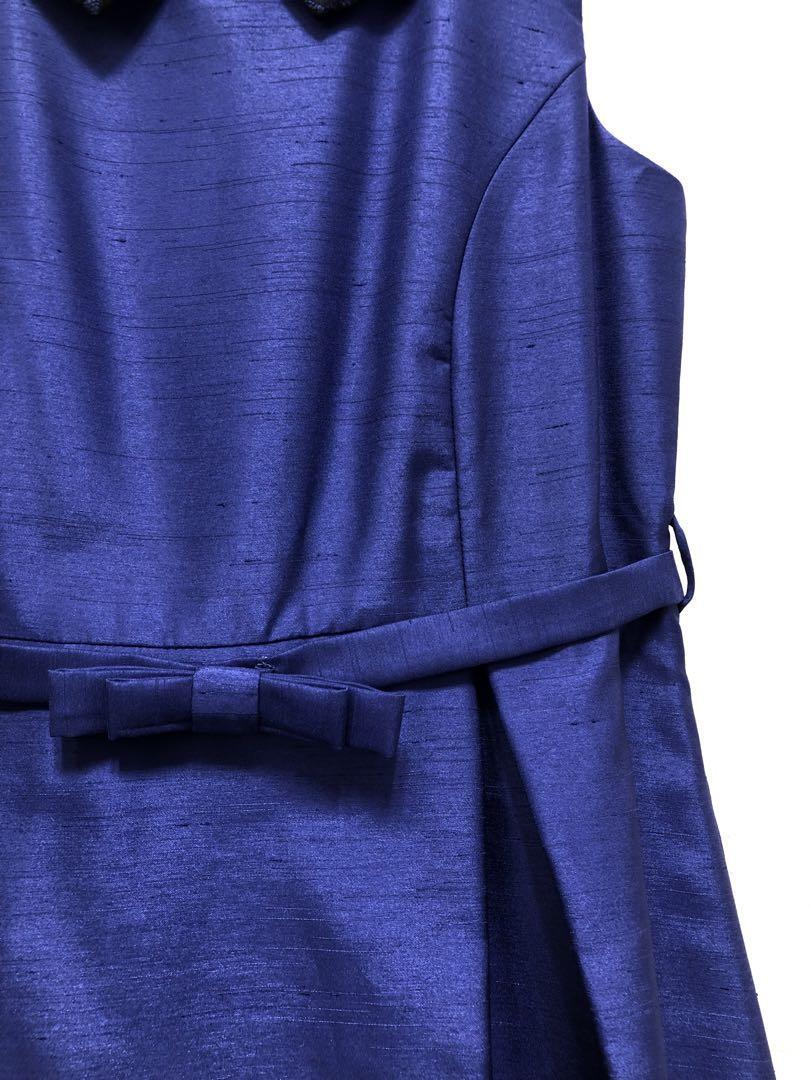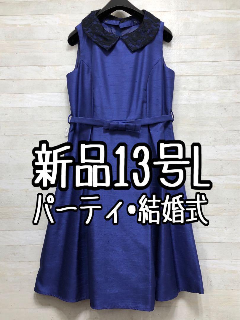 新品☆13号L♪青紫系パーティワンピ♪花柄つけ襟♪2wayワンピース〇D555