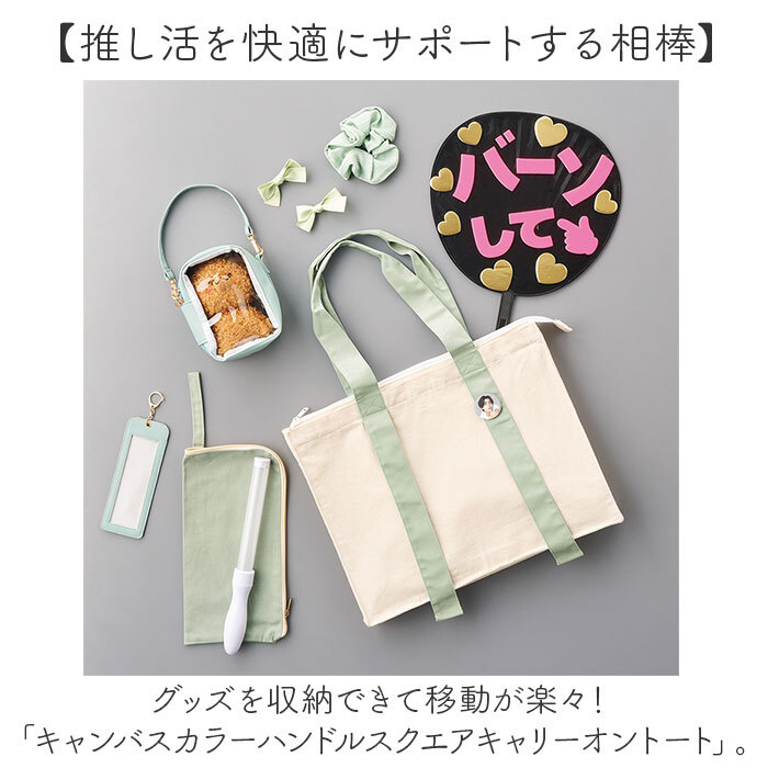 商品説明 | ・・【推し活を快適にサポートする相棒】 ・グッズを収納できて移動が楽々!「キャンバスカラーハンドルスクエアキャリーオントート」。 ・【推し活も普段使いもお任せ☆】 ・目立ちすぎないよう、ハンドル部分でカラー展開。仕事や学校後にそのまま現場へ直行も! ・【色んなコーデに素敵にマッチ】 ・ナチュラルな風合いのキャンバス素材に、長いハンドルがアクセント。コーデを選ばず長く愛用。 ・【肩掛けできてストレスフリー】 ・アウターの上からでも、肩に掛けられる長さのハンドル。荷物が重くなっても大丈夫。 ・【開閉スムーズ、安心の天ファスナー】 ・ガバっと開いて取り出しやすく、ファスナーを閉じれば中身の飛び出しをガード。 ・【遠征や旅行にも使用できて万能】 ・・1泊~2泊程度の着替えなどがひとまとめ。荷物がすっきり収納できる、容量約16L。 ・【うちわもすっぽり収まるポケット】 ・ライブやイベントのマストアイテム、うちわを収納できる!大きめの内ポケット付き。 ・【キャリーオンできて移動もラクラク】 ・背面のベルトを、キャリーのハンドルに差し込めるキャリーオンタイプ。 ・【推しカラーをさりげなく身につけて】 ・推しのメンバーカラーを選べる、豊富なバリエーション。仲間とお揃いもおすすめ! ・【ポケット仕様】 ・内側:オープンポケット×1 |