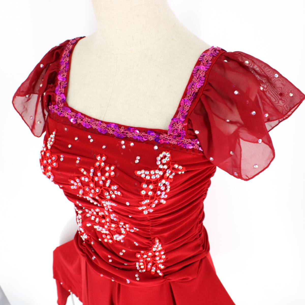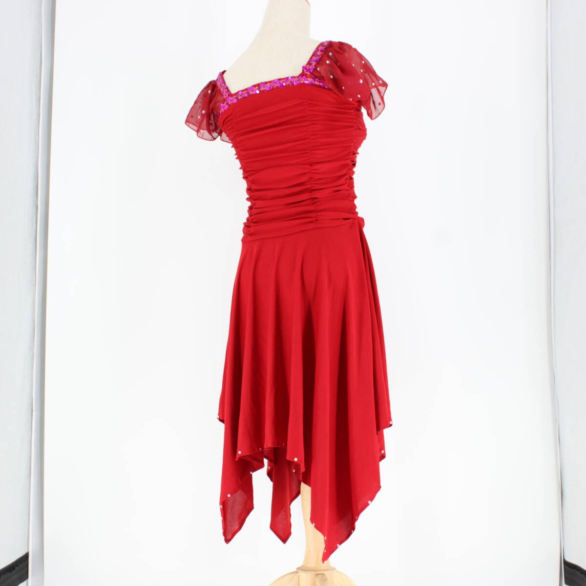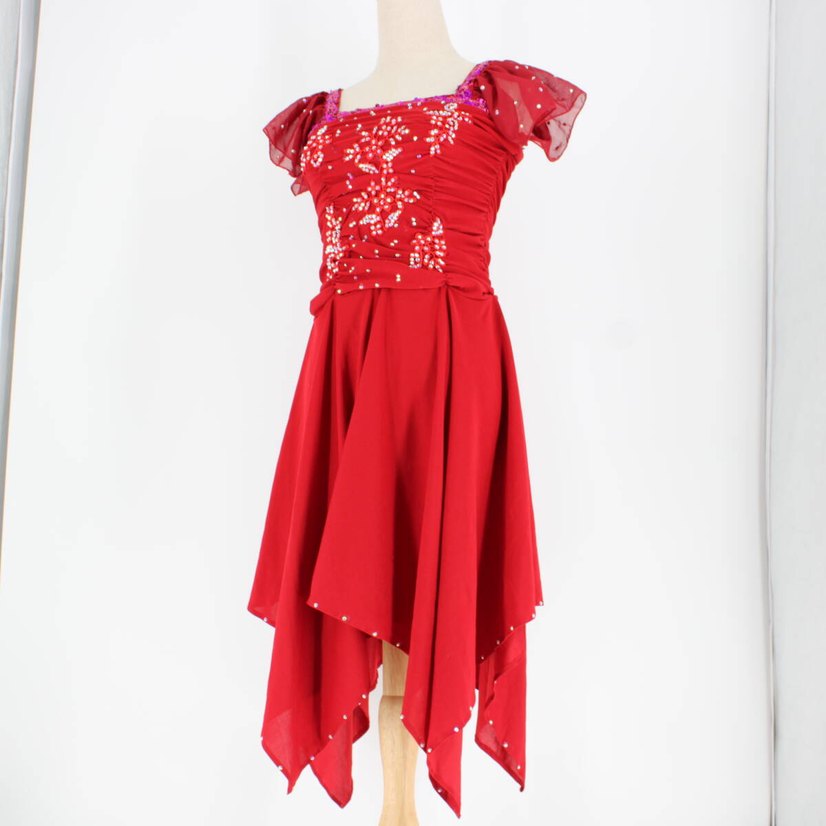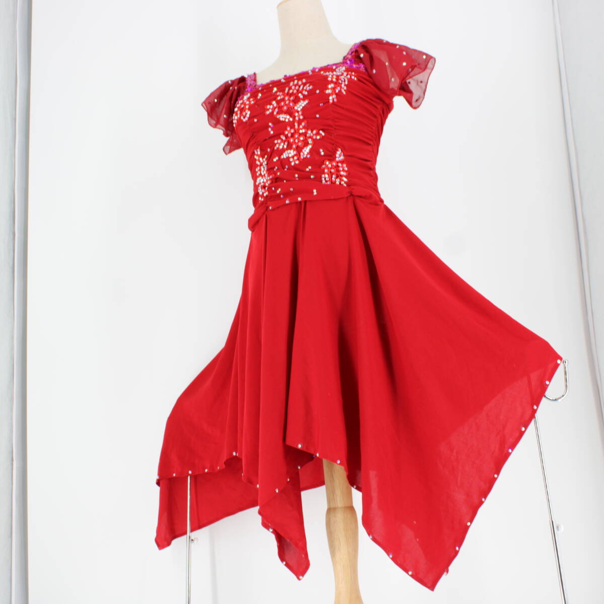 | 商品説明 | 【商品名】社交ダンス衣装 ドレス 【サイズ】 平置き実測:総丈約100cm(裾の一番長い所~肩部まで) 、肩幅約34cm、身幅約35cm、ウエスト約28~37cm ※実測の為、多少の誤差はご容赦願います。 【仕様】 ・伸縮性有り ・胸パッド無し ・肩パッド無し ------------------------------------ 【ポイント】 ▽印象的な赤色ドレス ▽ラインストーン付き ------------------------------------ 【撮影時使用トルソー:女性用トルソー7号(少し細めのサイズです)】 ■トルソーサイズ詳細 肩幅約37cm、バスト約83cm、ウエスト約60cm、ヒップ約81cm |