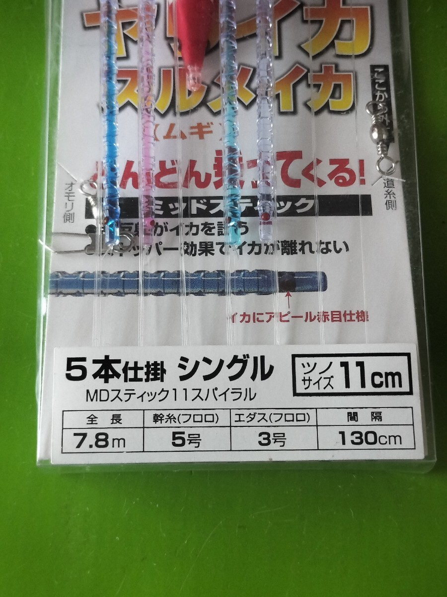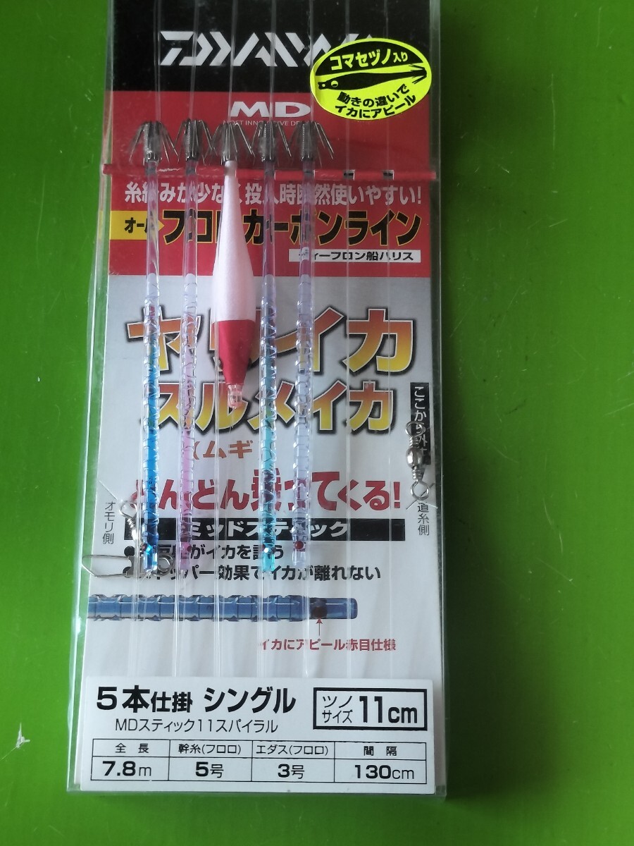 ダイワ イカ仕掛け 11cm5 本角1段 スパイラル ブランコ マ イカ ケンサキイカ スルメイカ アカイカ ヤリイカ ハリス3号幹糸5号枝間130センチ全7.8m パッケージの擦り傷等の痛みがあります。