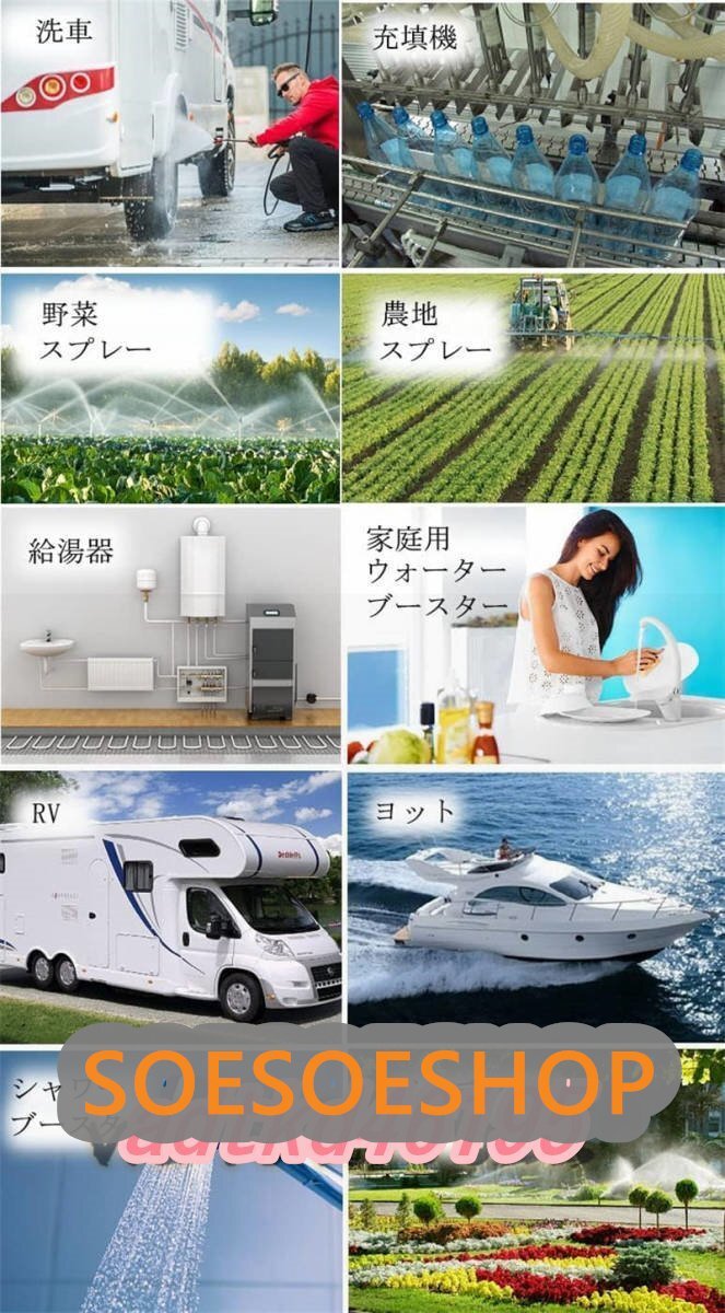○大流量で、液体輸送についてのさまざまなニーズを満たすことができます。給水、洗車、自動機、充填機、ガーデンスプレー、農業用スプレー、給湯器、家庭用ウォーターブースター、RV、ヨット、シャワーブースター、グリーンスプレー、産業機器、化学薬品投与、衛生、印刷など幅広い用途 です。家庭用、農業用、工業用、旅行用。