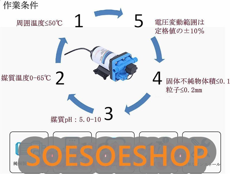 ○定格電圧はAC110Vで、DC配線の手間が省けます。よりシンプルで操作が簡単です。インポートサイズはスタンダード1/2"-14おねじインターフェースです。不一致について心配する必要はありません。真空自吸機能、過負荷保護機能、高温保護機能付き、ポンプ本体の安全性を十分に保護できます。