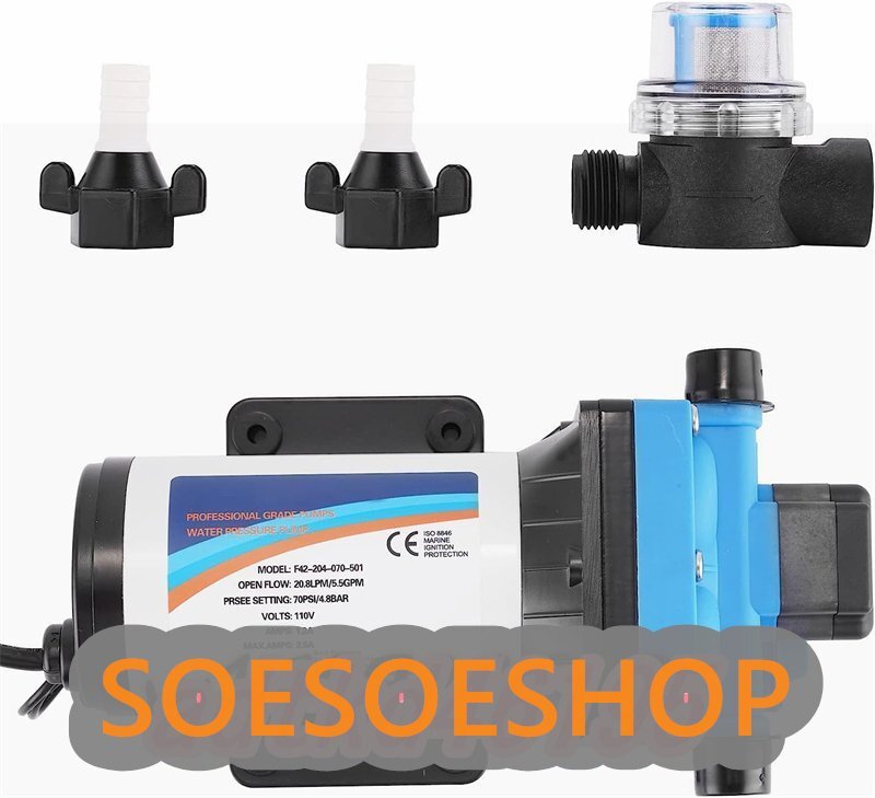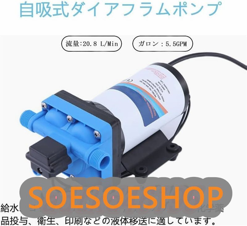 給水 排水ポンプ 110Vダイアフラムポンプ 自吸式ウォーターポンプ最大20.8 L/Min 70Psi 275W 自動圧力スイッチ 逆流機能付き 農業 家庭用