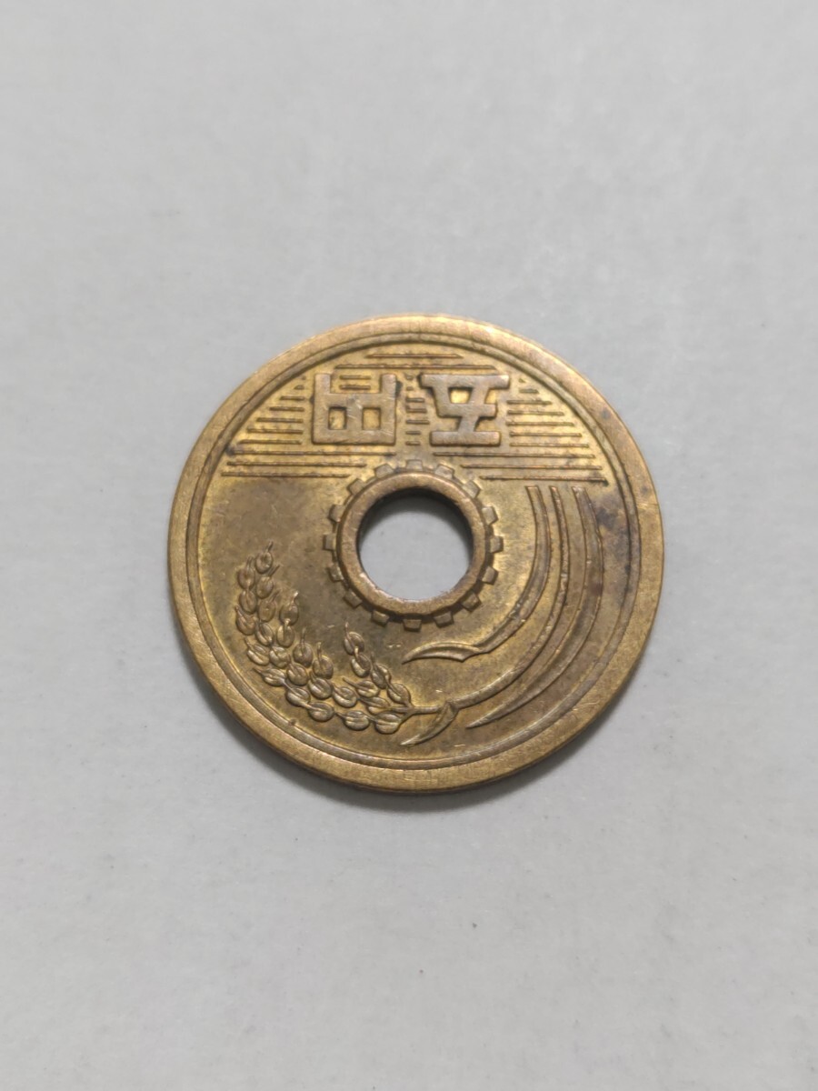 昭和43年(1968年)発行 5円硬貨 黄銅貨 1枚