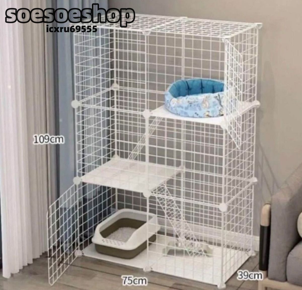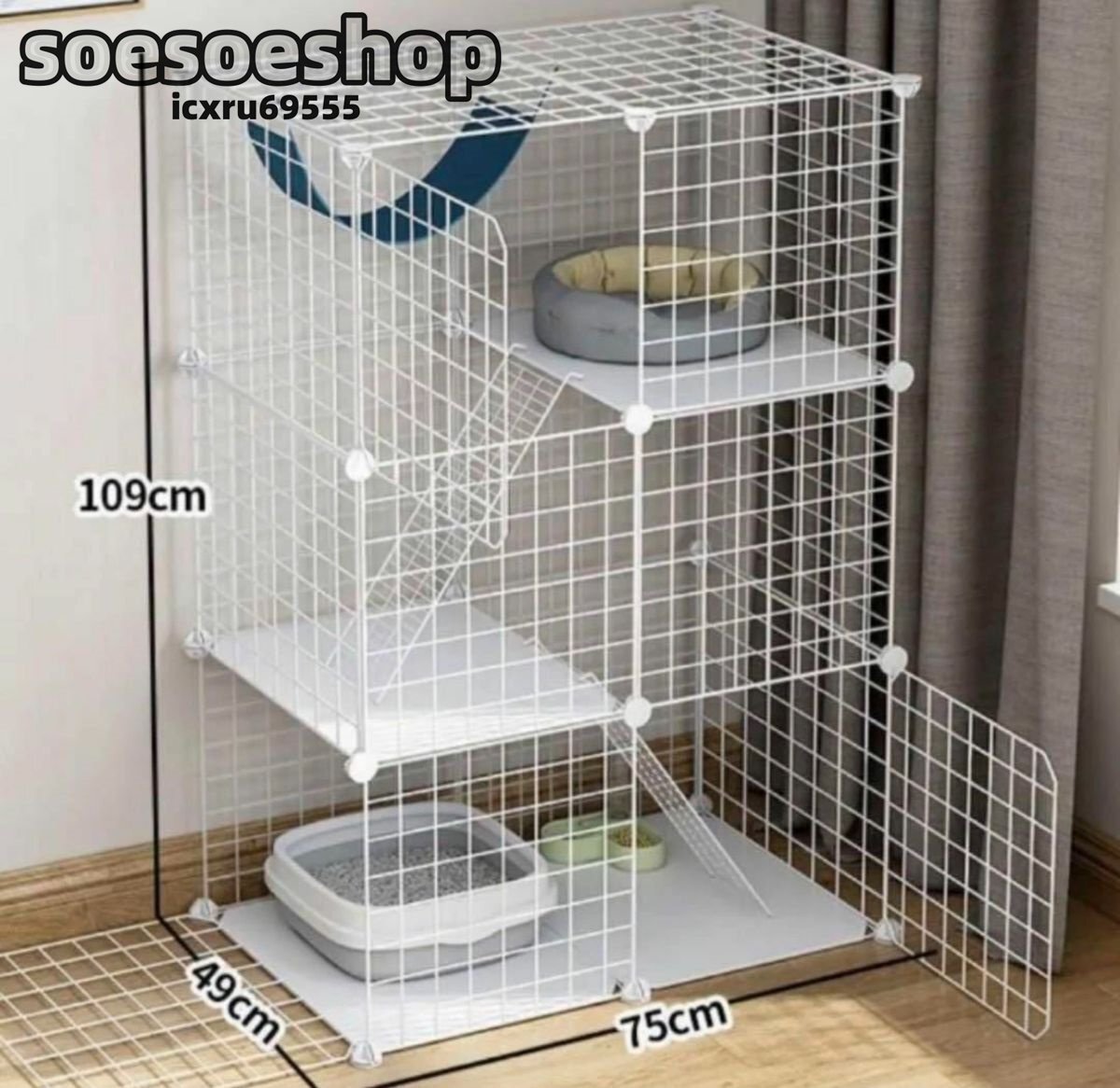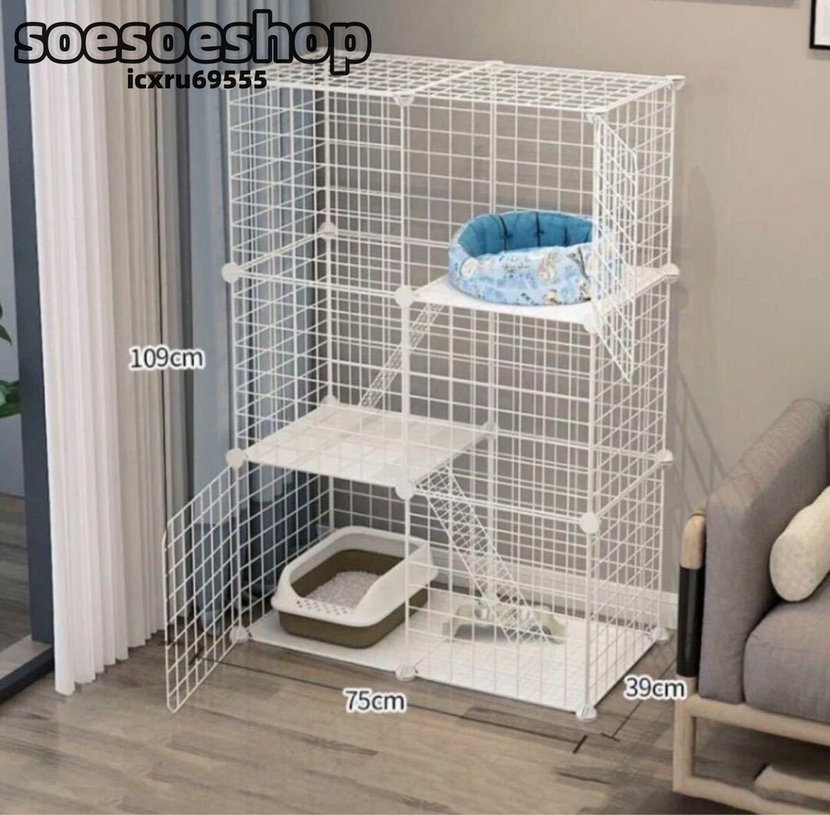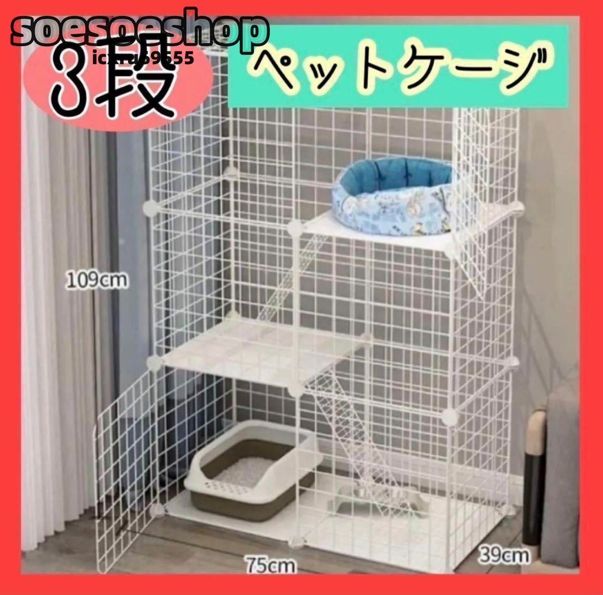 キャットゲージ 3段ペットゲージ 組み立て式 白 ホワイト 猫 ケージ ハウス