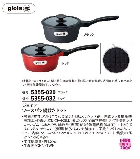 【商品番号】 5355-020 / 5355-032 【商 品 名】 ジョイア ソースパン鍋敷きセット 1組 |